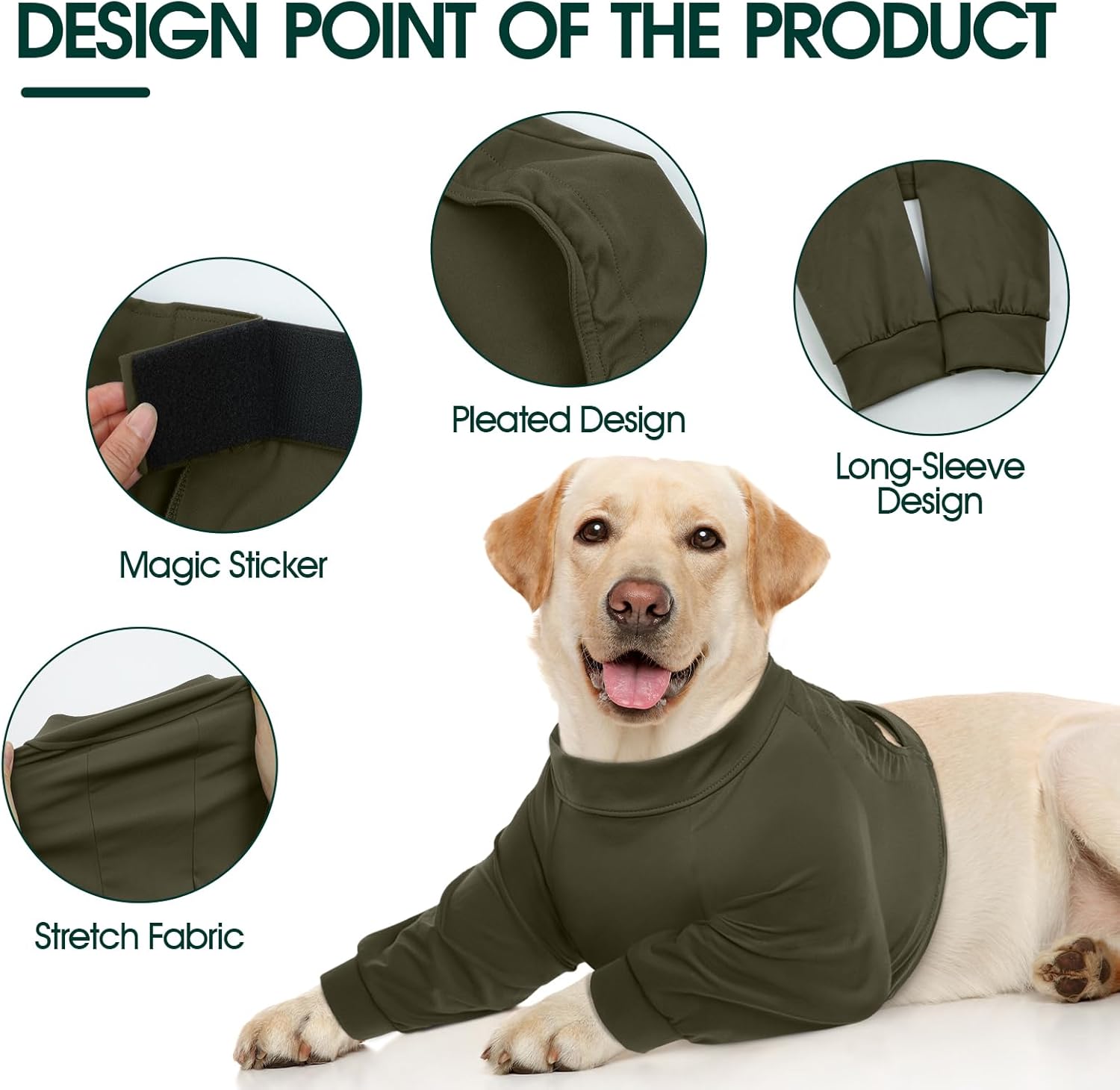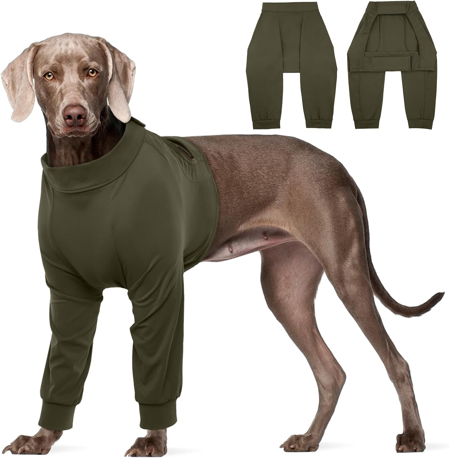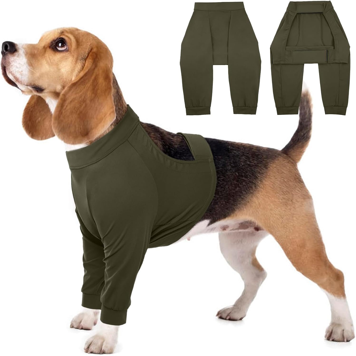 Следоперативно боди Kuoser за кучета за мъжки и женски кучета, защитен костюм против облизване след кастрация, дишащ боди за кучета, следоперативно боди против фитил, защита за декубитални рани и лакти, армейско зелено, размер L
