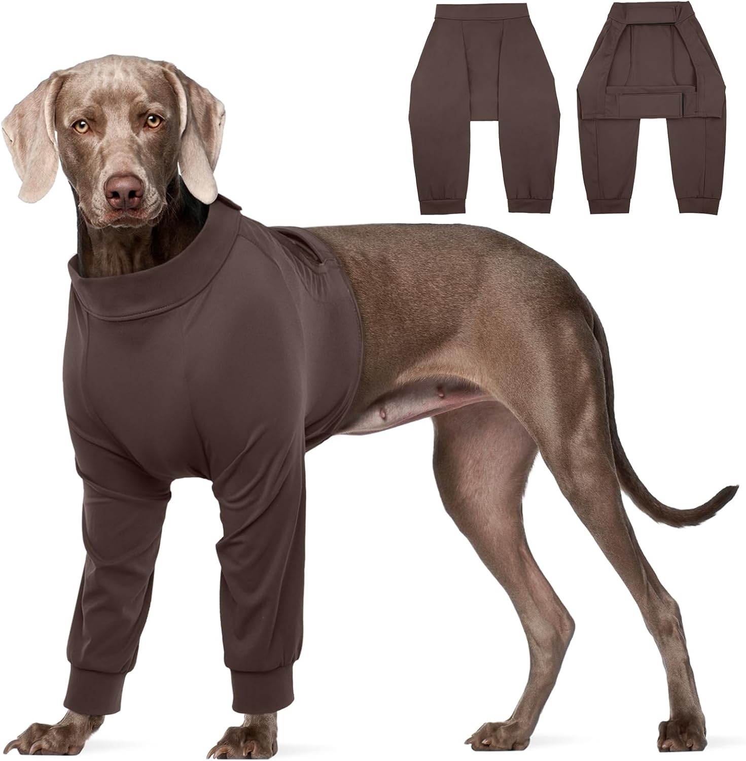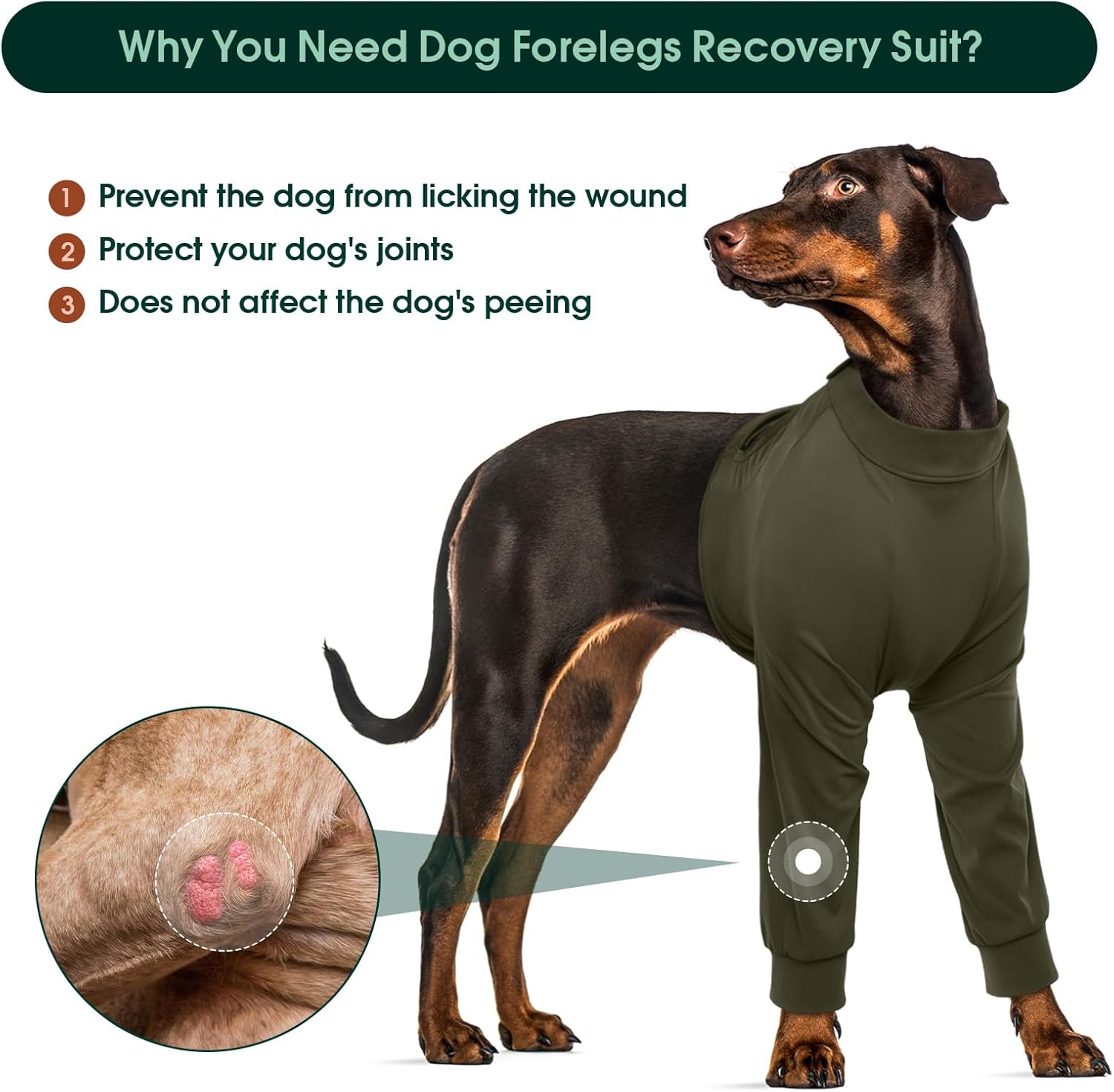 • [Универсална употреба]: Идеален за следоперативни грижи, кожни проблеми, обриви, изгаряния и алергии. Този възстановяващ костюм за предните крака на кучетата може да се използва и за покриване на мехлеми и превръзки. Той е предназначен да предпазва лакътните стави на кучето от косопад и струпеи, като същевременно позволява лесно ползване на тоалетна по време на разходки и игра.