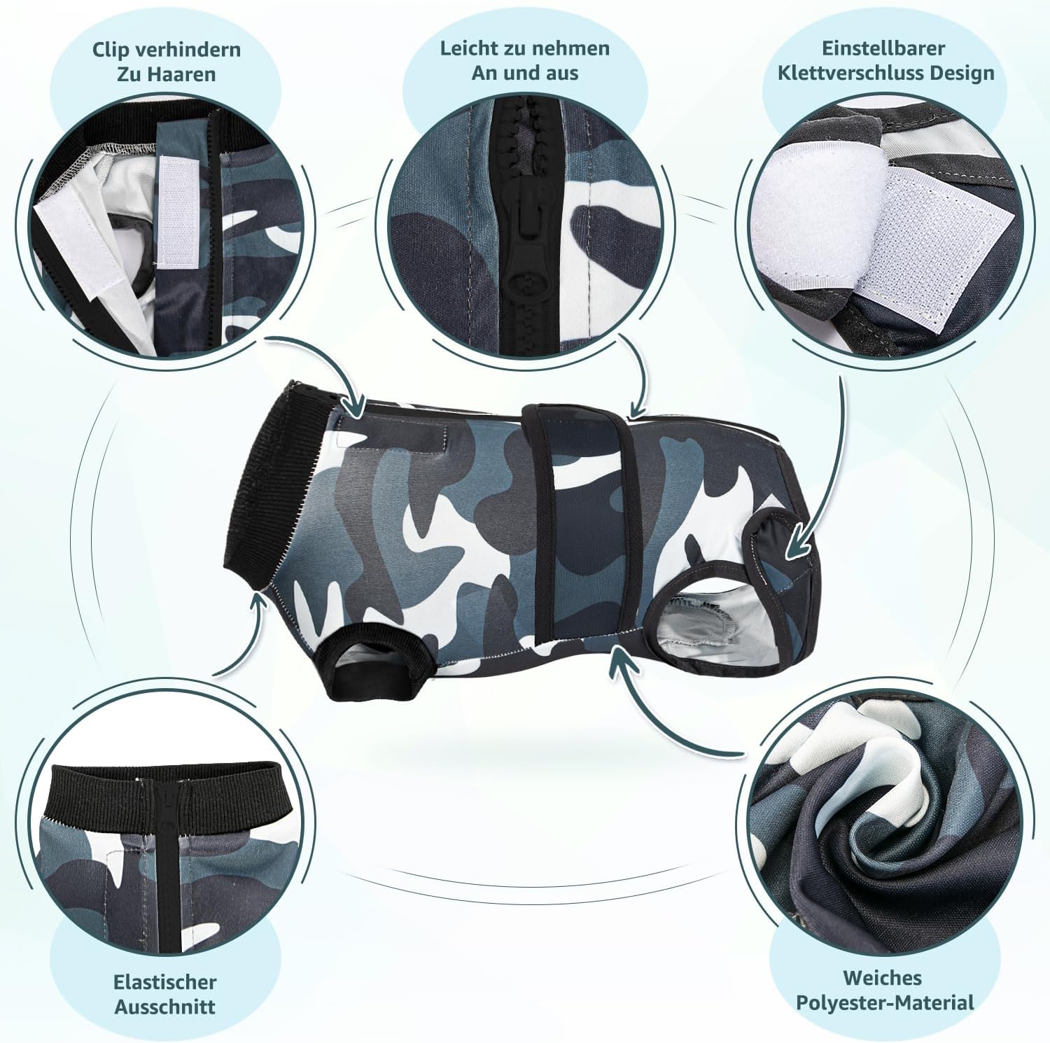 Следоперативно боди за кучета, костюми за защита от рани за женски и мъжки кучета с цип и велкро колан - против облизване и защита от рани, дишащ еднокомпонентен костюм за кучета след операция (камуфлажен, 3XL)