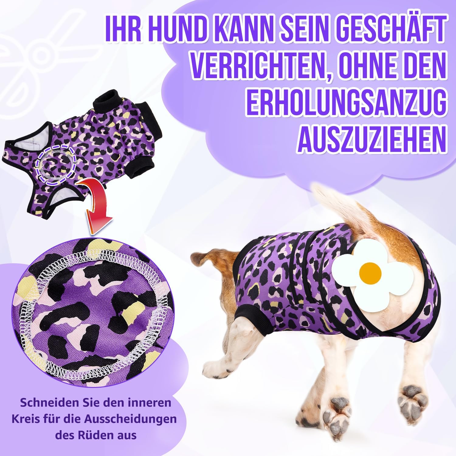 • 【Универсална употреба】 – Костюмът за възстановяване на кучета е подходящ за последващи грижи, например след кастрация или стерилизация, както и за следродилна грижа. Той е добра алтернатива на конуса, тъй като позволява на кучето да играе и да се храни свободно. След възстановяване, костюмът за възстановяване може да се носи и като удобно облекло за дома.