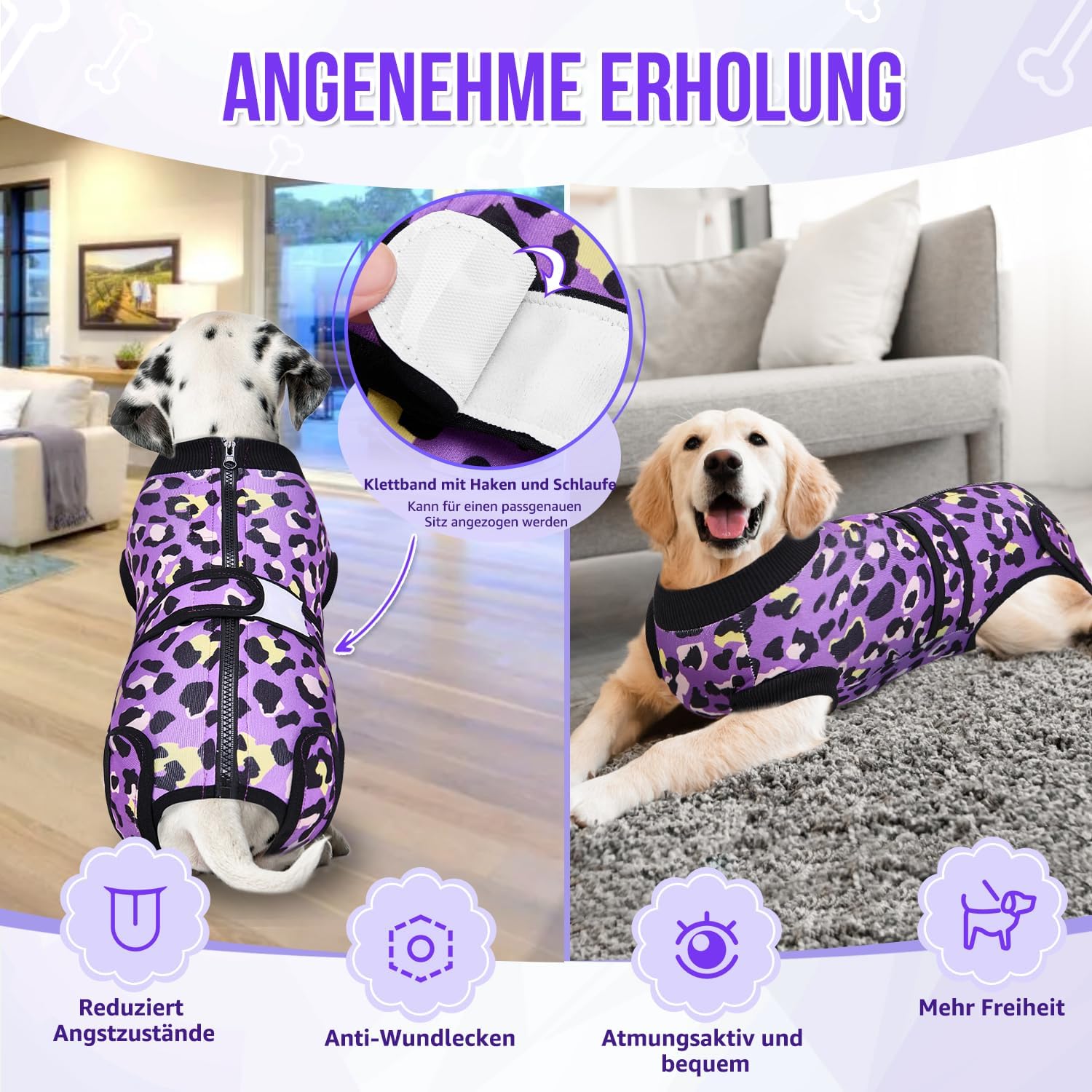 Следоперативно боди за кучета, костюми за защита от рани за женски и мъжки кучета с цип и велкро колан - против облизване и защита от рани, дишащ еднокомпонентен костюм за кучета след операция (тъмно лилав, 3XL)