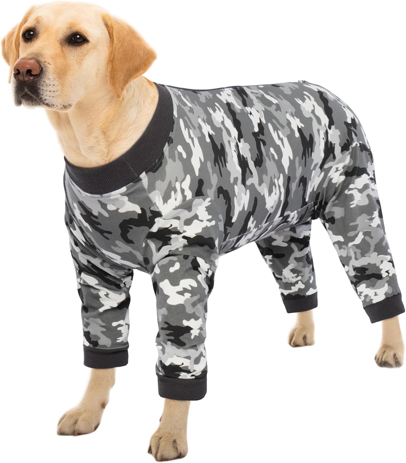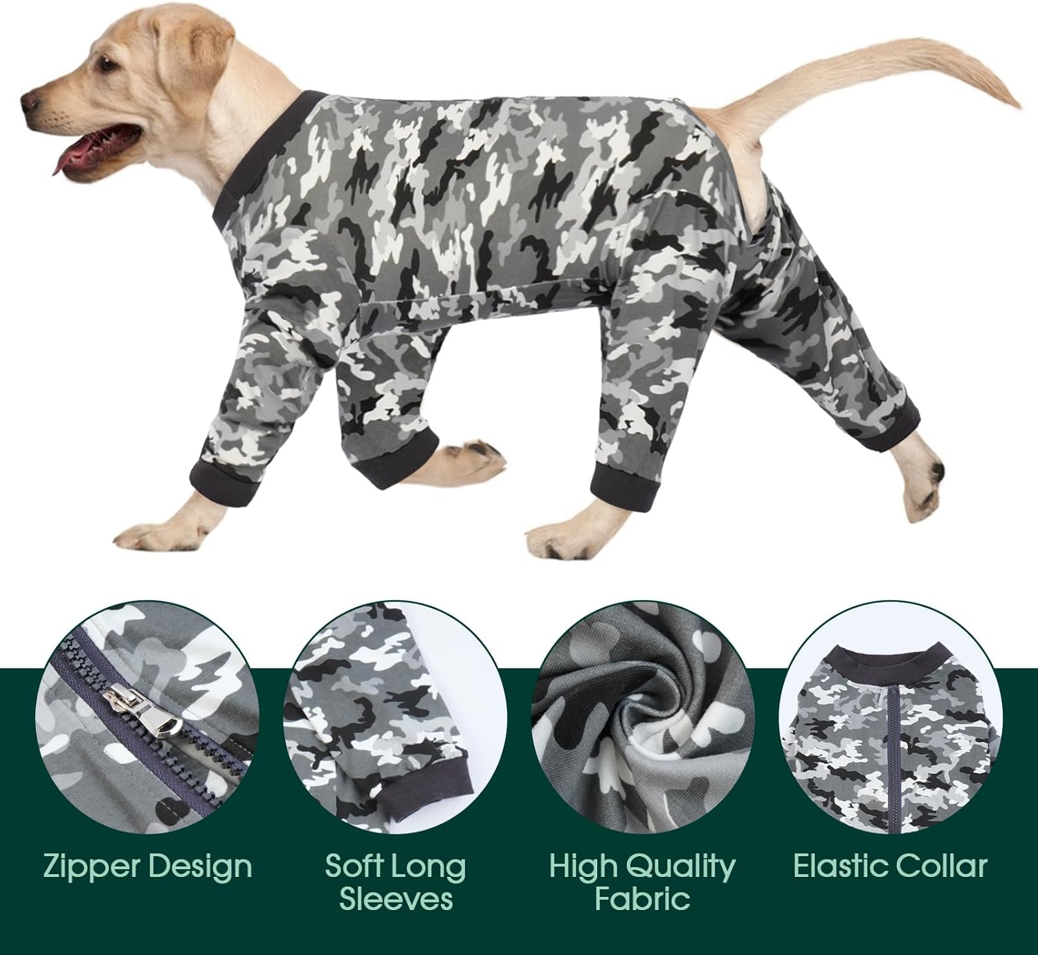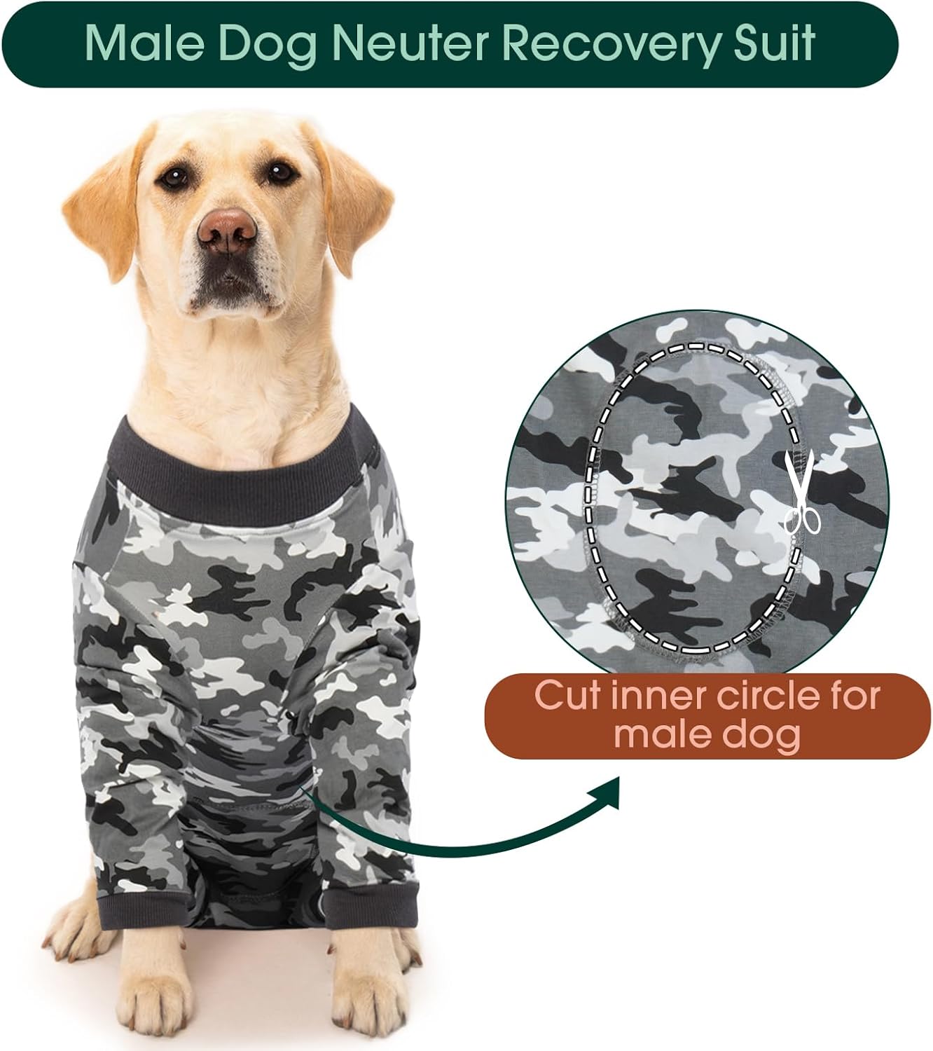 Следоперативно боди за кучета Kuoser за големи кучета, еднокомпонентно хирургично боди за мъжки кучета (кастрация), боди за кучета с крачоли, дълги ръкави за женски кучета, алтернатива на конус за врата на куче, 2XL