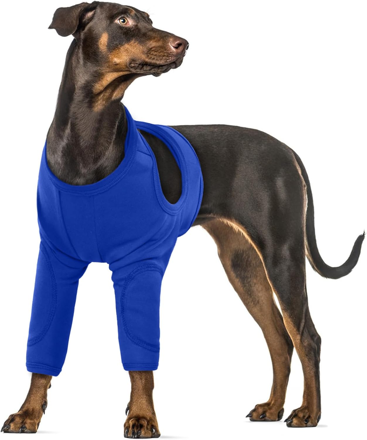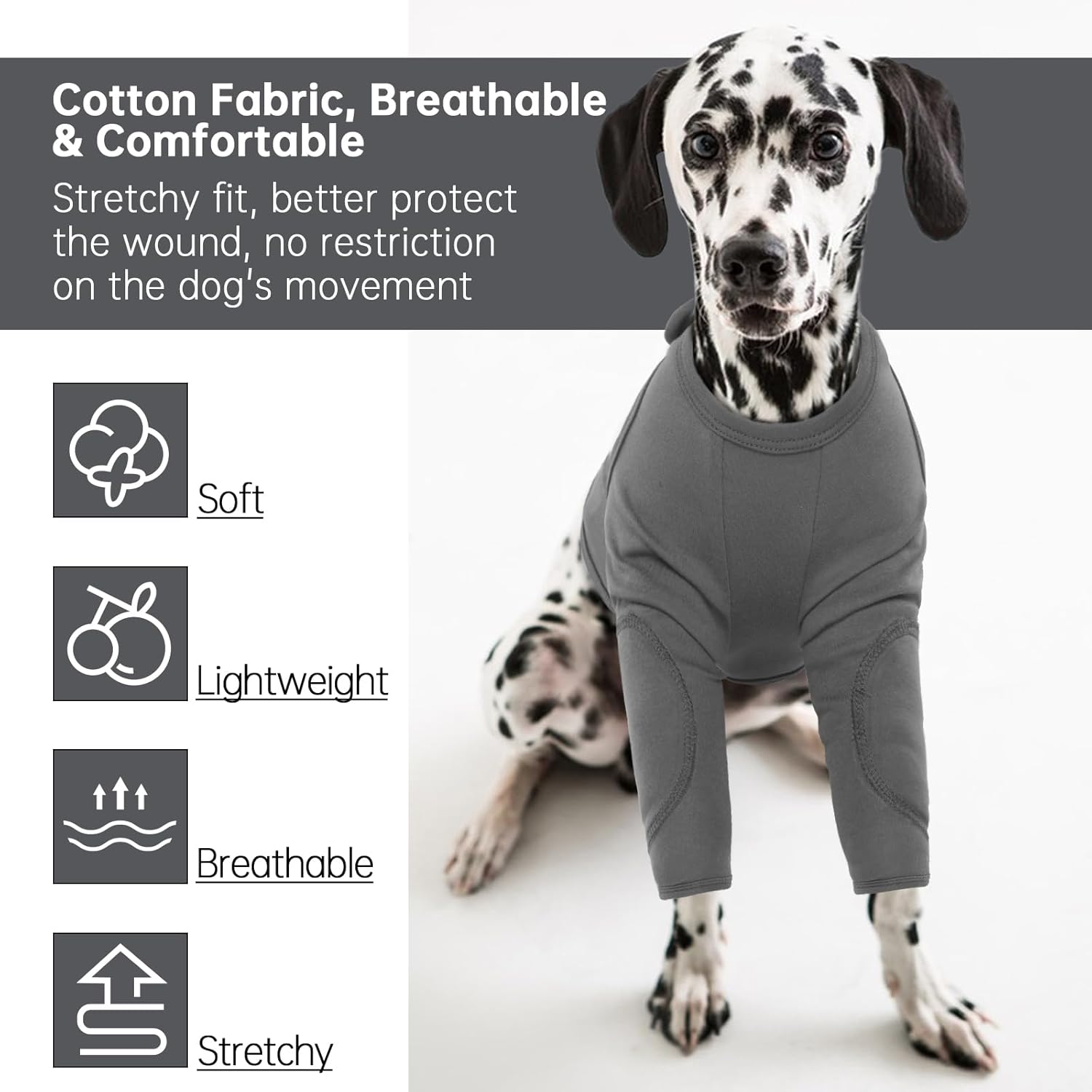 • 【Защита за предните крака】Нашият костюм за възстановяване на кучета е изработен от мек, еластичен памук, който се приспособява към тялото на вашето куче, осигурявайки оптимален комфорт и защита. Протекторите за крака могат да предотвратят облизването на кучетата и да предпазят ставите, раните, огнищата, инфекциите и кожните проблеми.