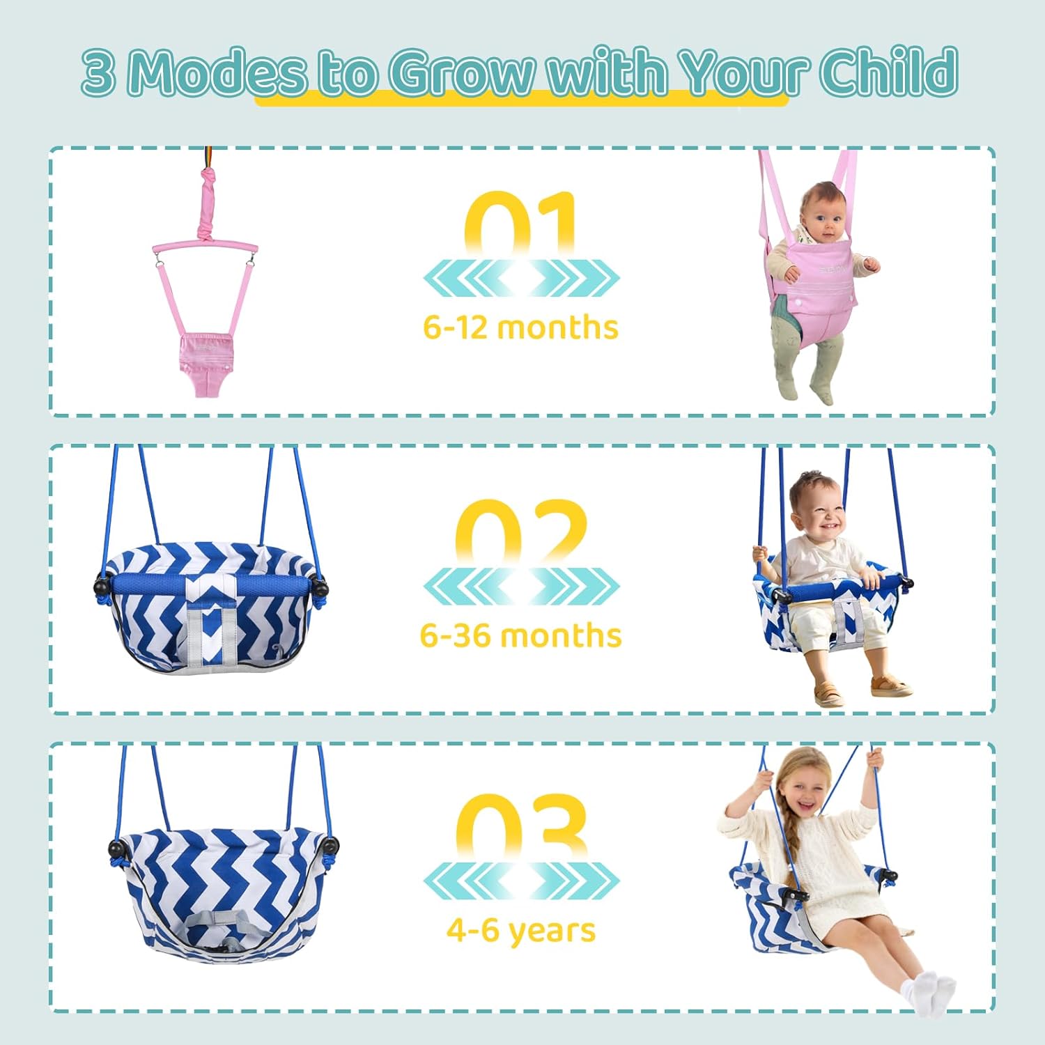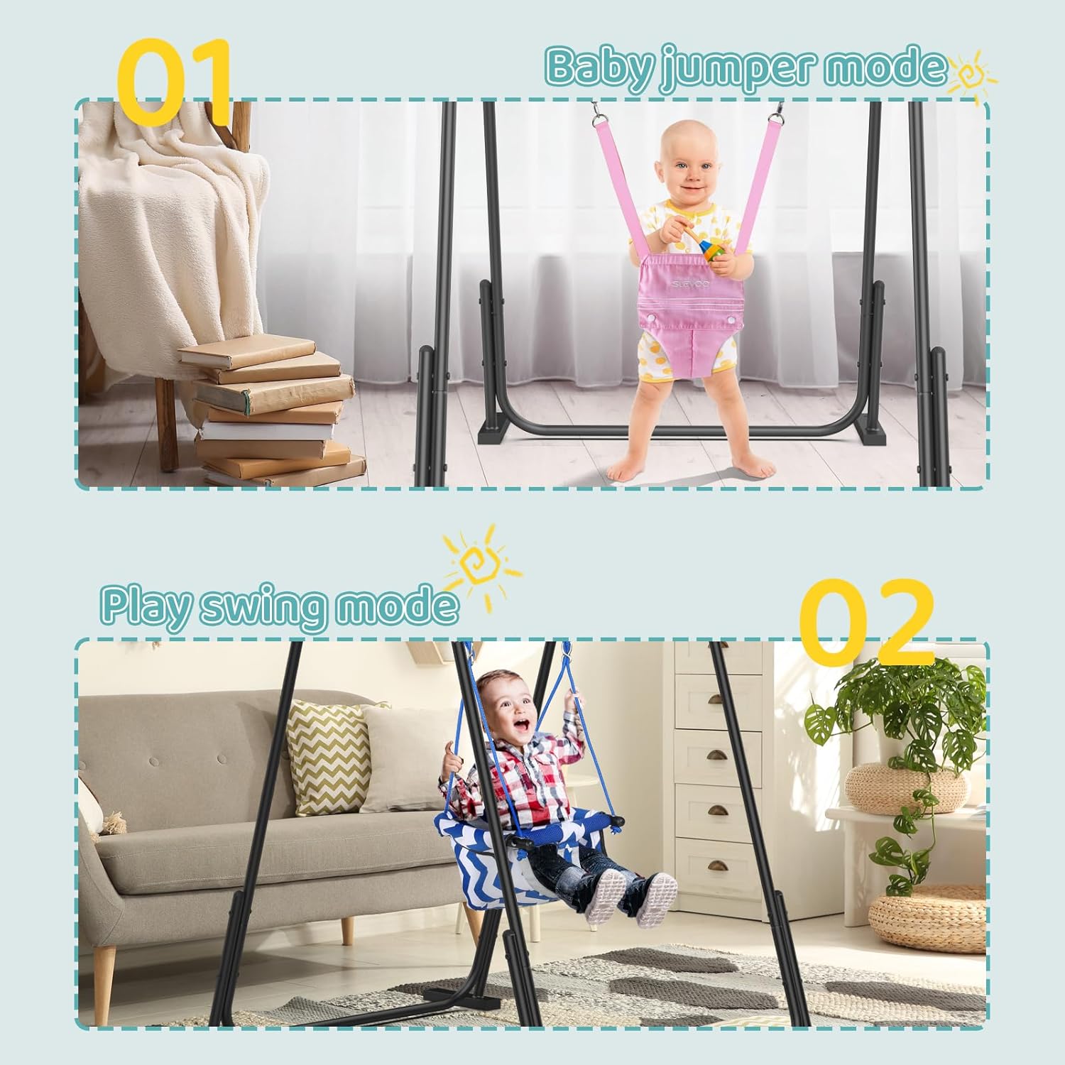 Slevoo 2-в-1 бебешка люлка и джъмпер, комплект люлки за малки деца със сгъваема стойка, за възраст от 6 месеца до 6 години, за забавление на закрито и открито (розов)