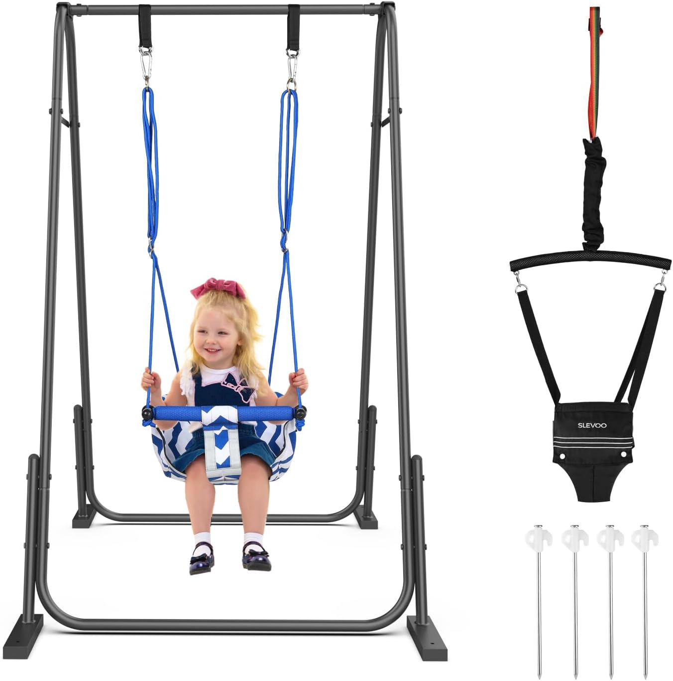 • Безопасна игра на открито: Slevoo 2-в-1 бебешка люлка и джъмпер. Четири земни котви осигуряват допълнителна стабилност и гарантират безопасно забавление по време на игра в градината или парка.