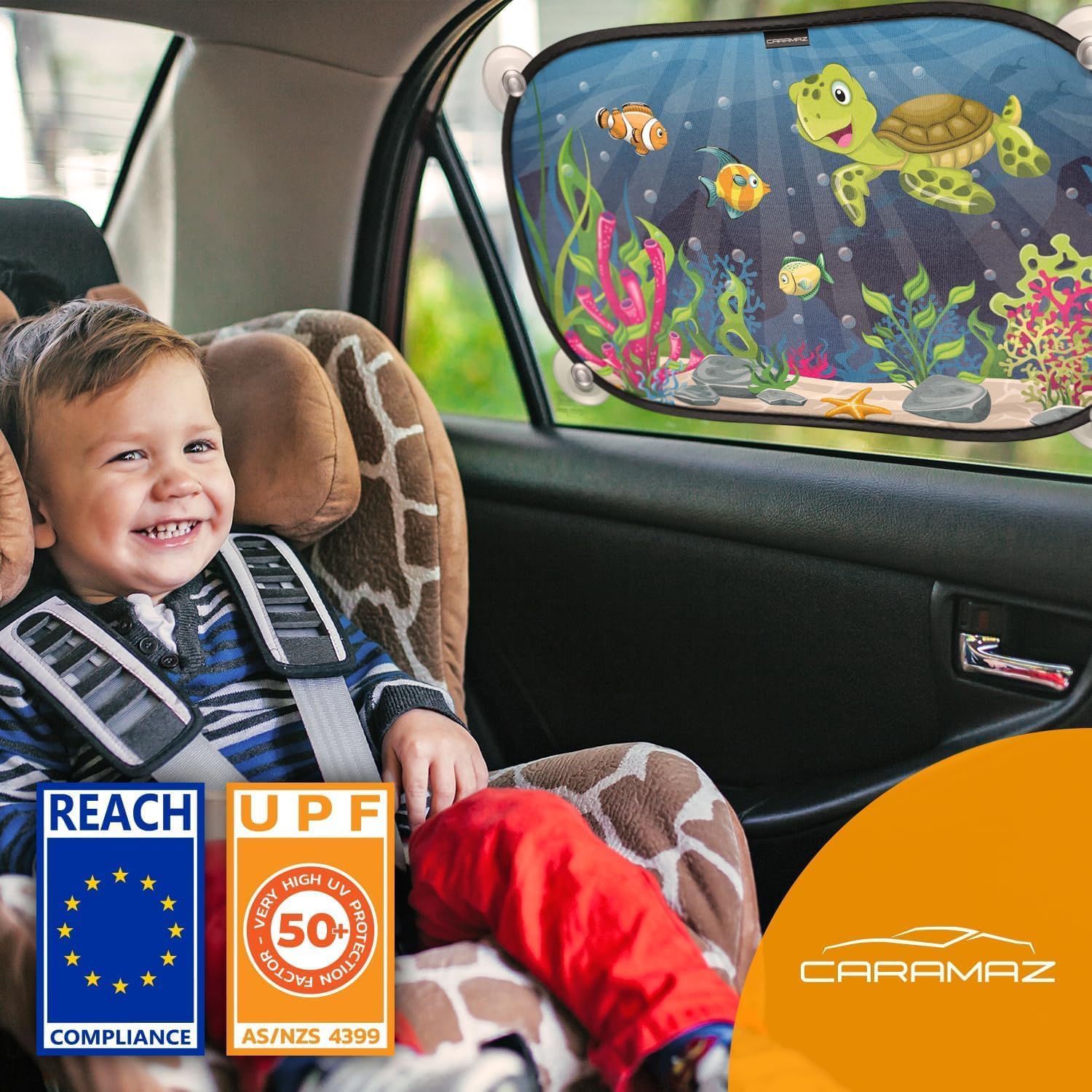 Слънцезащитен сенник за кола за бебе със сертифицирана UV защита – Екстра тъмен 51 x 31 см – Комплект от 2 самозалепващи се сенника за кола за деца – Слънцезащитен сенник за кола за бебе – Слънцезащита за прозорец на кола, средна, 1_Turtle.