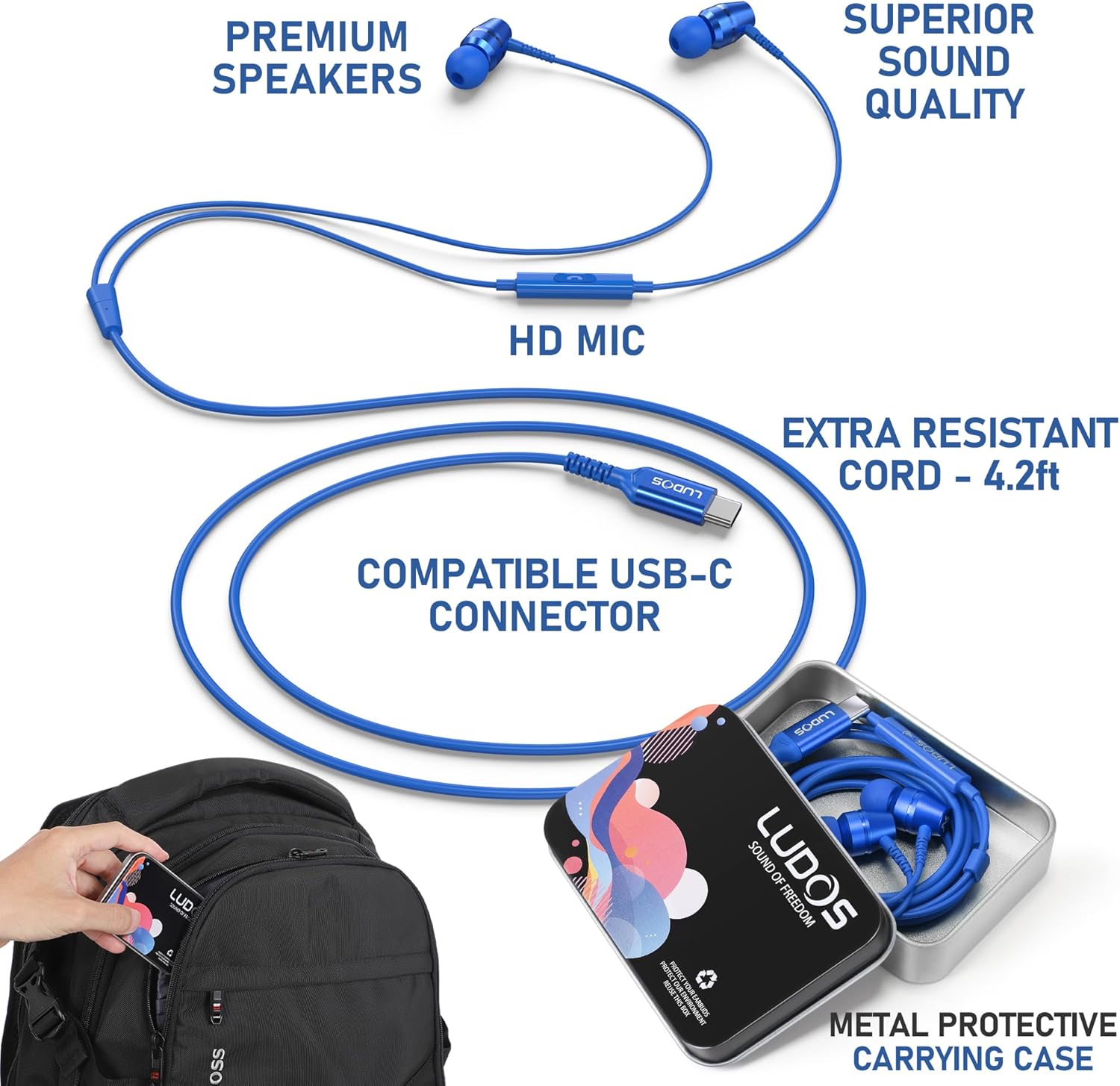 • Слушалки LUDOS: Ние сме водещата марка на пазара за кабелни слушалки в Amazon в Северна Америка и Европа. Предлагаме мощни високоговорители и отлично качество на звука. Кабелът е с дължина 1,2 м.