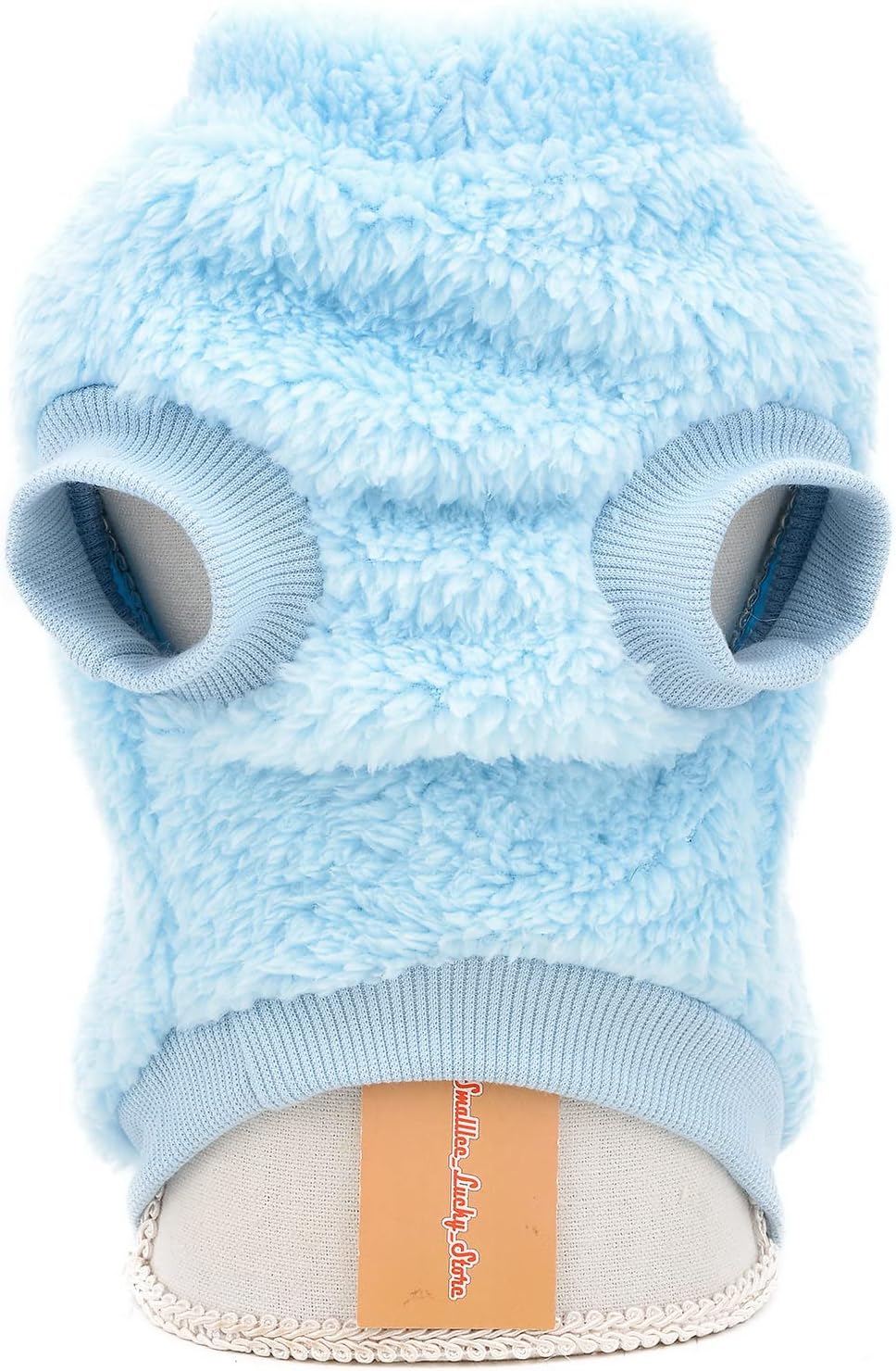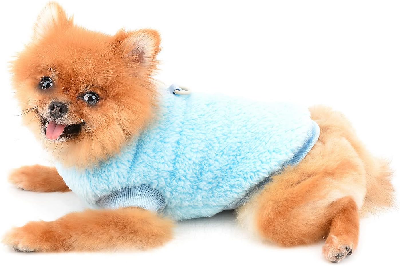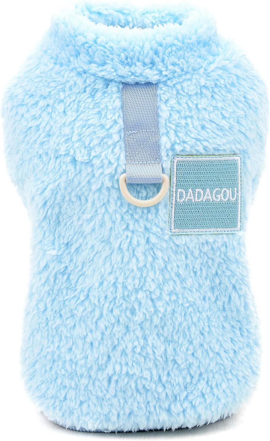 SMALLLEE_LUCKY_STORE Пуловер от шерпа полар за домашни любимци, поло яка с D-образен пръстен, мек суичър за малки кучета, котки, кученца, йоркширски териер, чихуахуа, топли есенно-зимни дрехи, син, размер L