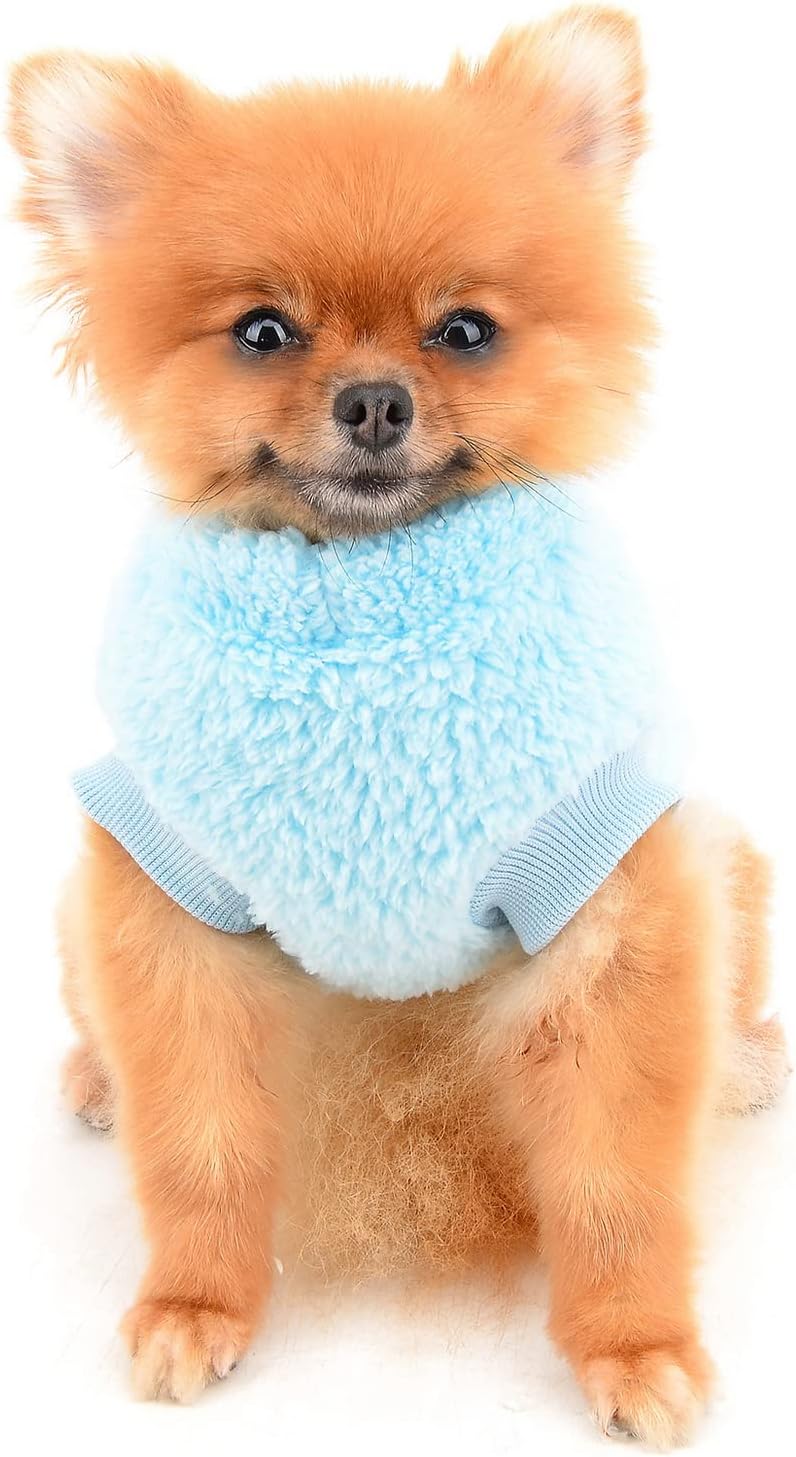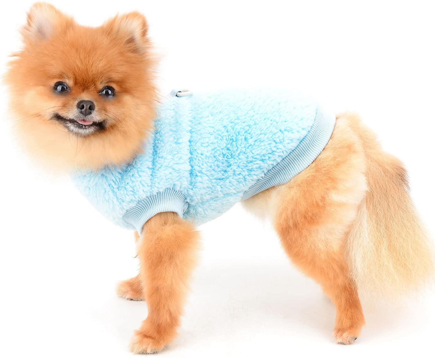 SMALLLEE_LUCKY_STORE Пуловер от шерпа полар за домашни любимци, поло яка с D-образен пръстен, мек суичър за малки кучета, котки, кученца, йоркширски териер, чихуахуа, топли есенно-зимни дрехи, син, размер S