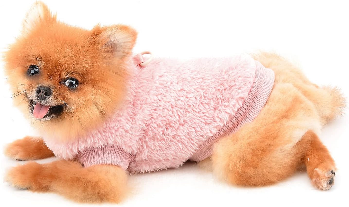 SMALLLEE_LUCKY_STORE Пуловер от шерпа полар за домашни любимци, поло яка с D-образен пръстен, мек суичър за малки кучета, котки, кученца йоркширски териери, чихуахуа, топли есенно-зимни дрехи, розови, размер S