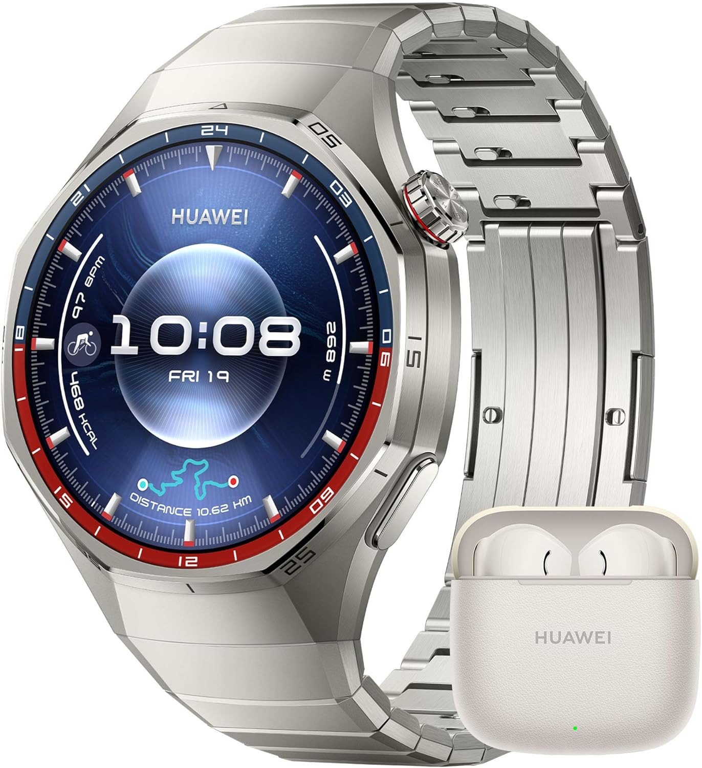 Смарт часовник HUAWEI Watch GT 6 Pro + FreeBuds SE 3 бежов, GPS, ЕКГ, AMOLED дисплей, батерия до 21 дни, пълен набор от функции за велосипедисти, съвместим с Android и iOS, монитор за здраве, цвят тиан, ​​46 мм