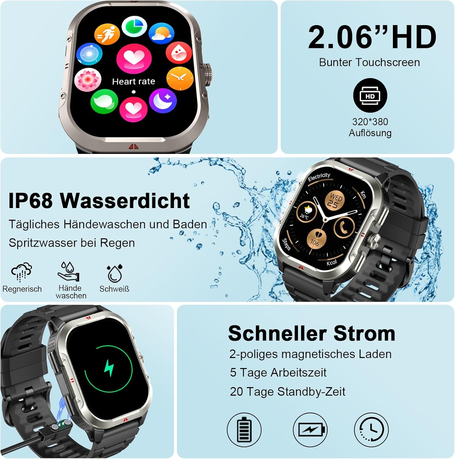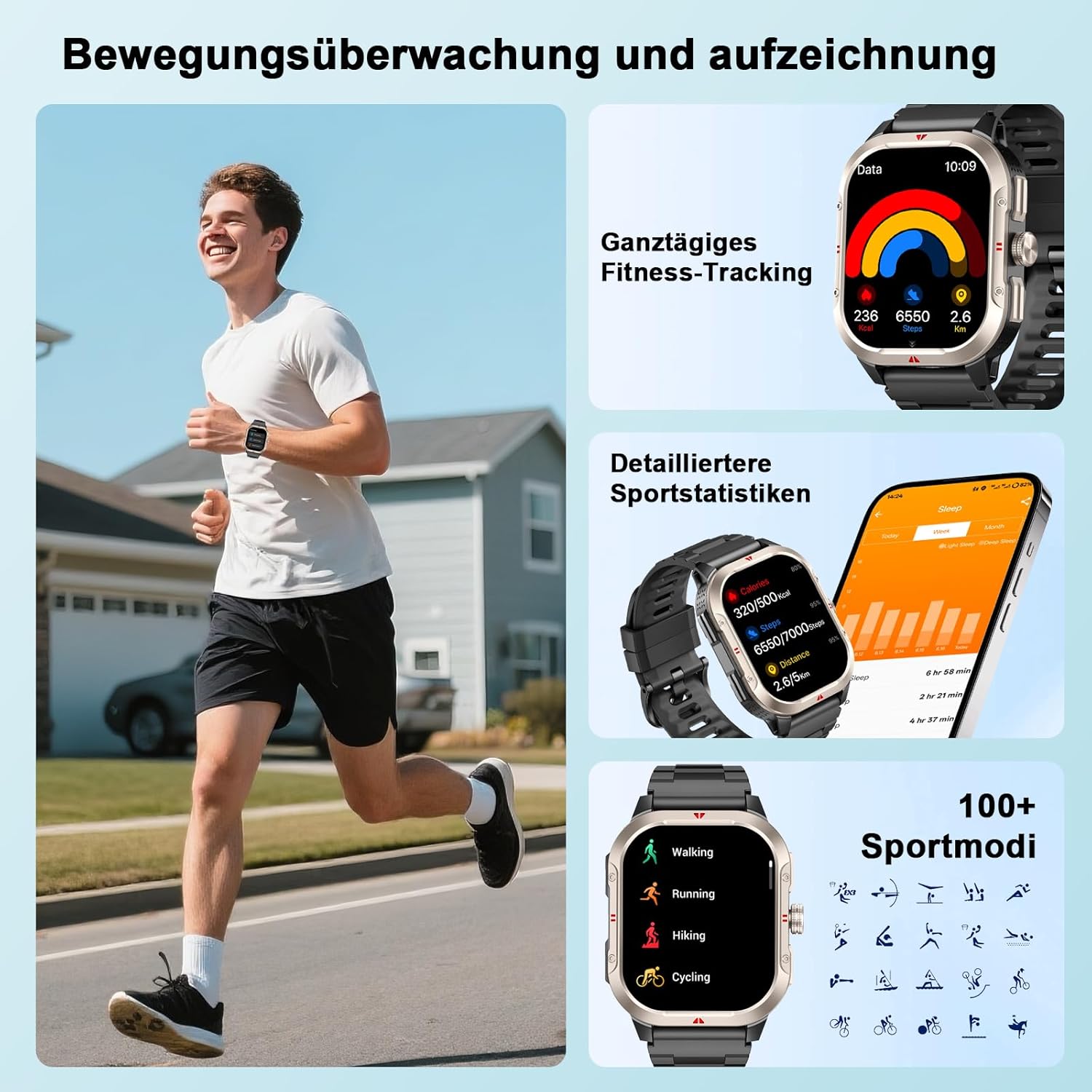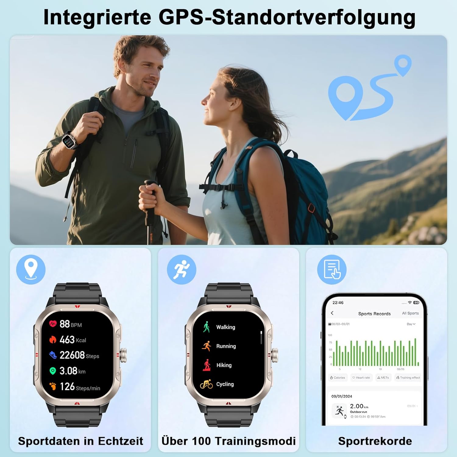 Смарт часовник Jugeman с GPS, 2.06-инчов HD смарт часовник за мъже и жени с функция за телефон, 110+ спортни режима, спортен часовник с крачкомер, пулсомер, монитор за сън, водоустойчив IP68, за Android и...