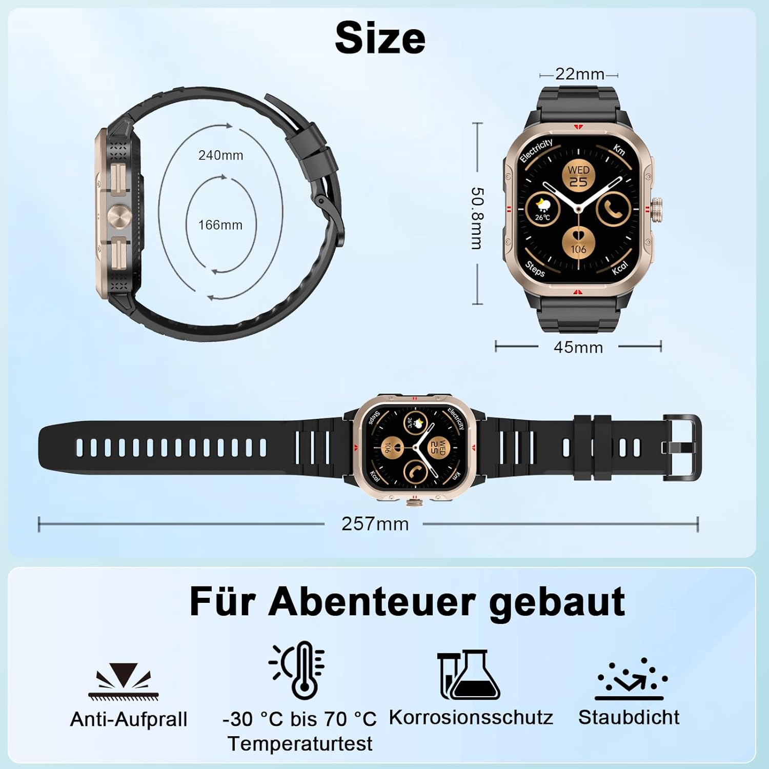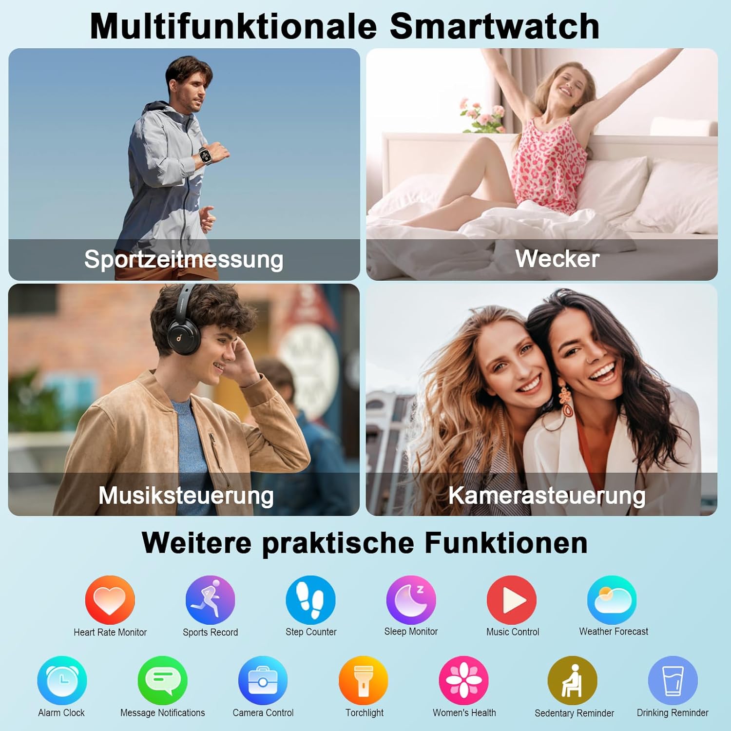 • 100+ спортни режима и водоустойчивост IP68 Този смарт часовник предлага над 100 спортни режима, включително ходене, бягане, колоездене и йога, което го прави идеален за ежедневните нужди от упражнения на спортните ентусиасти. Активностният тракер записва вашите специфични спортни данни, като например Благодарение на водоустойчивостта IP68, този фитнес часовник може да издържи на дъжд, пот и пръски без повреди по време на тренировка.