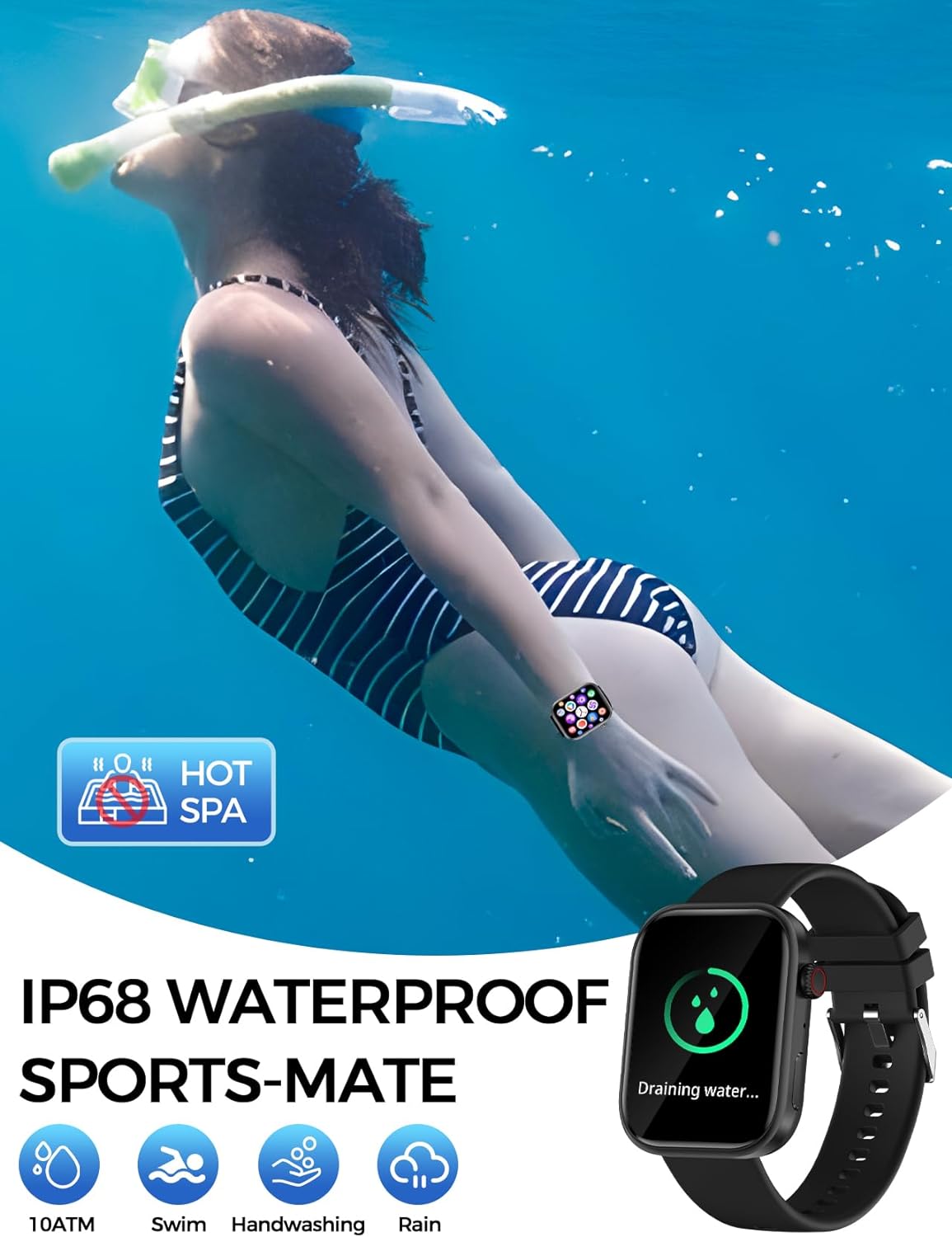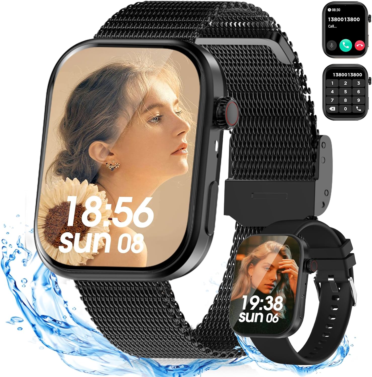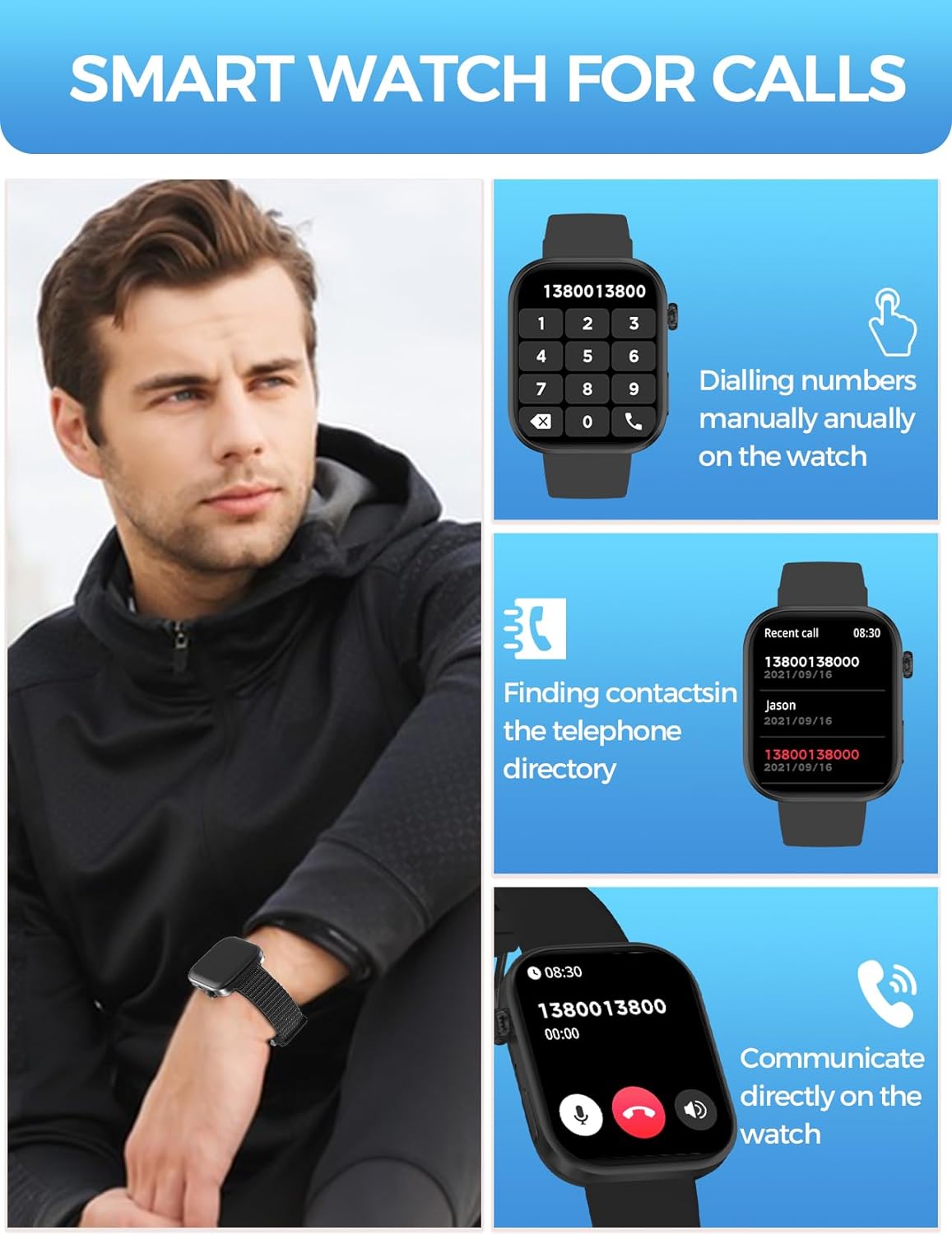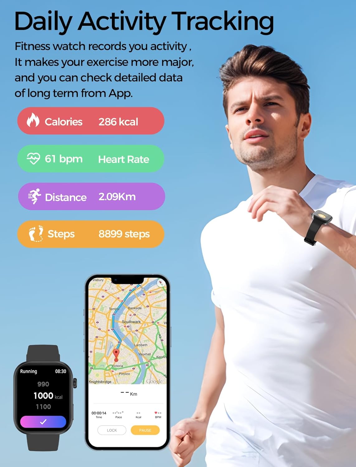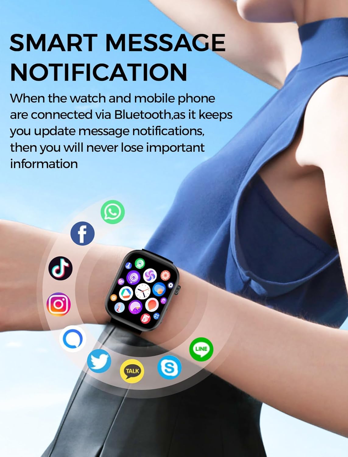 • Bluetooth 5.2 версия, свържете часовника към телефона чрез Bluetooth, можете да извършвате или получавате повиквания директно от часовника. Той също така поддържа известия за съобщения в реално време от приложения като WhatsApp / Facebook / Instagram / Skype и т.н., всички известия се показват на китката Ви.