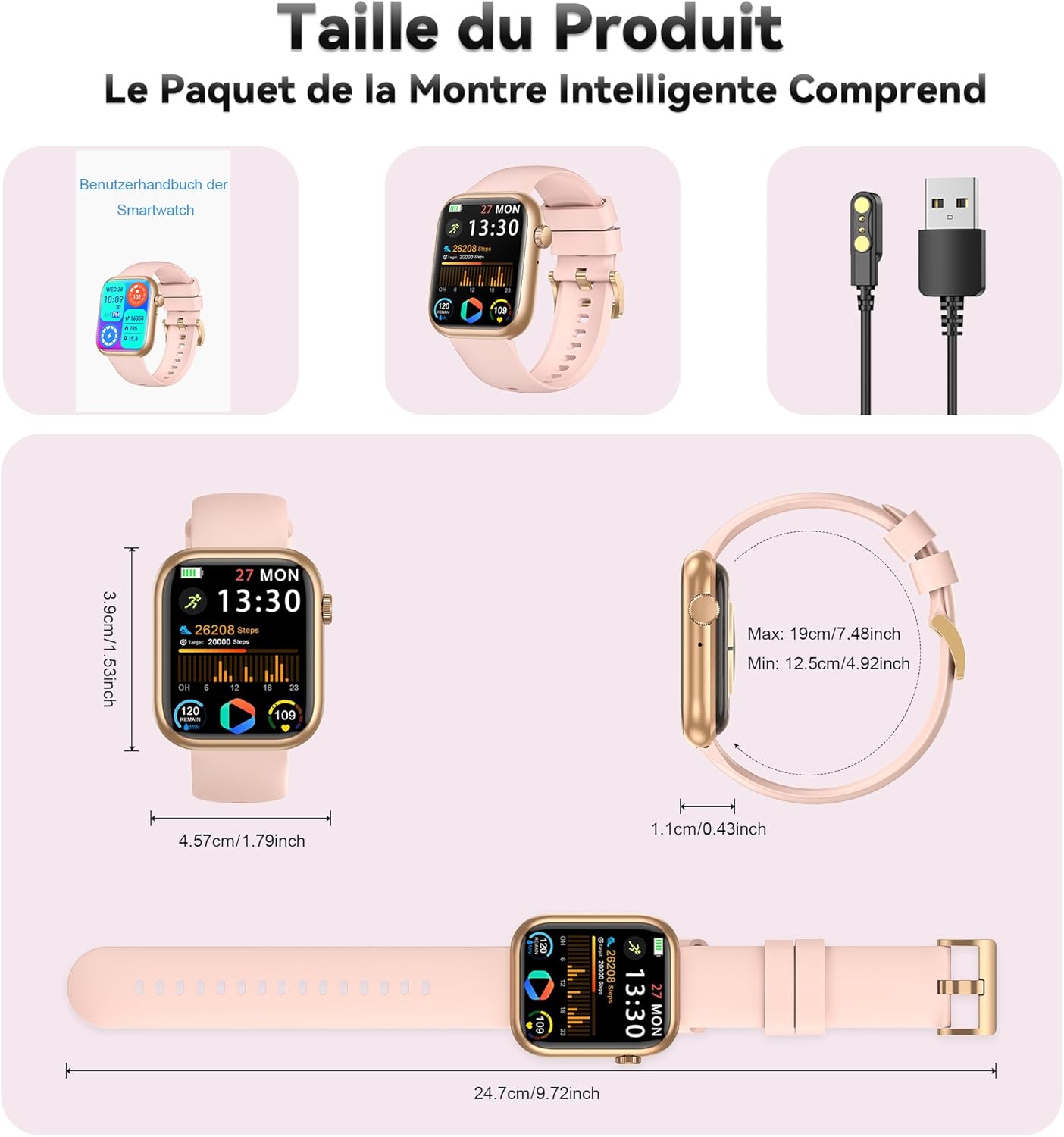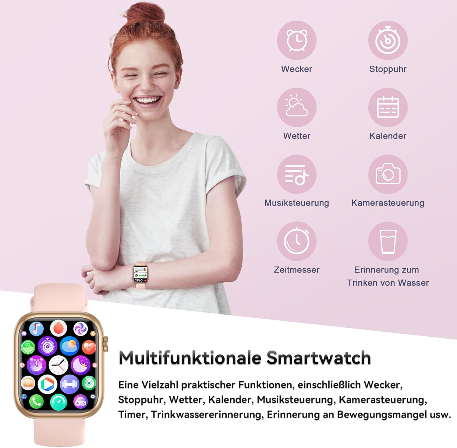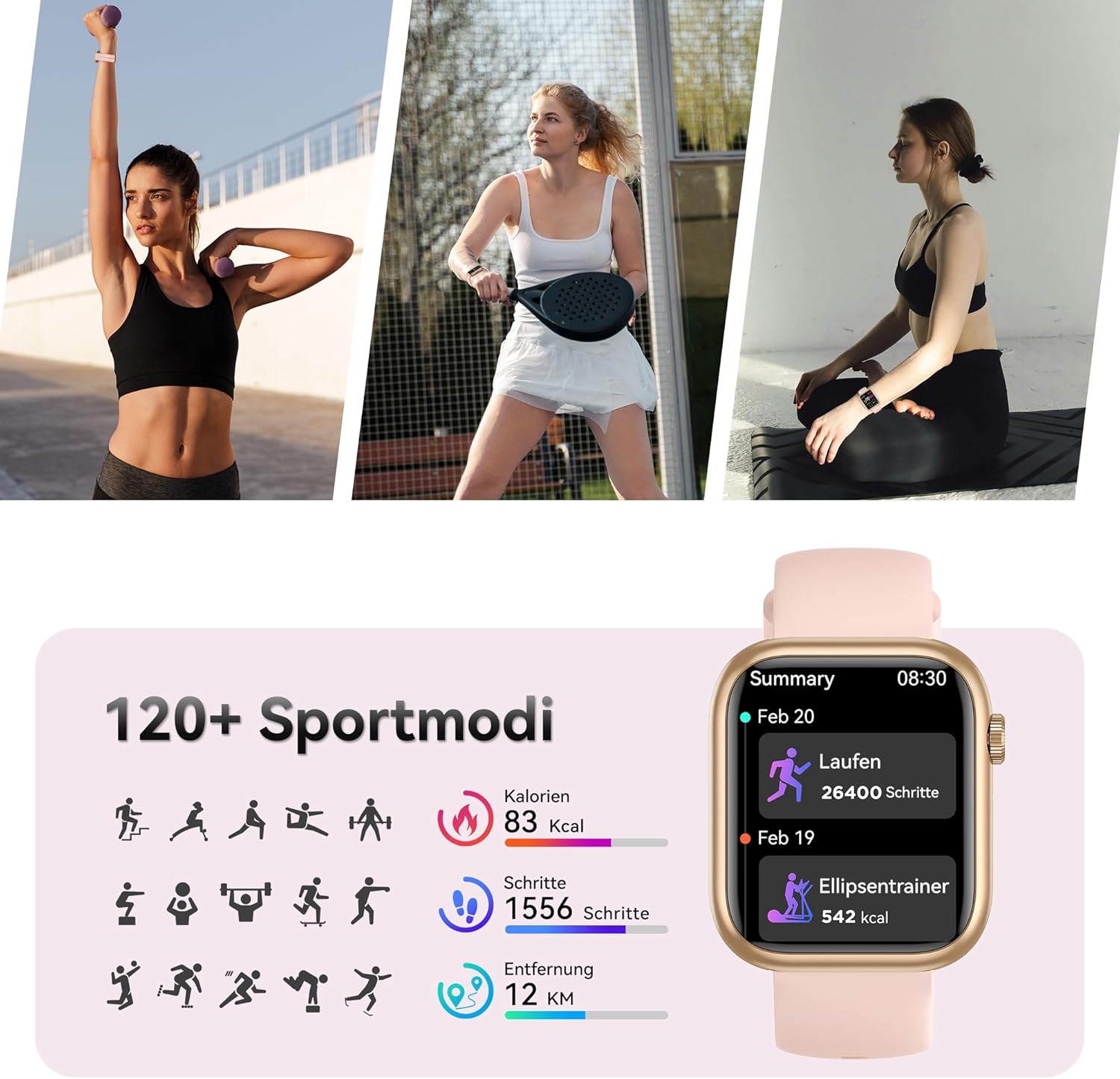• Bluetooth телефония и известия: След Bluetooth връзка можете да отговаряте или да осъществявате повиквания директно чрез смарт часовника - идеално за в движение, по време на спорт или в офиса. Освен това, часовникът ви информира в реално време за съобщения от WhatsApp, Facebook, Instagram и др. Така че винаги можете да сте в крак с времето, без постоянно да гледате смартфона си.