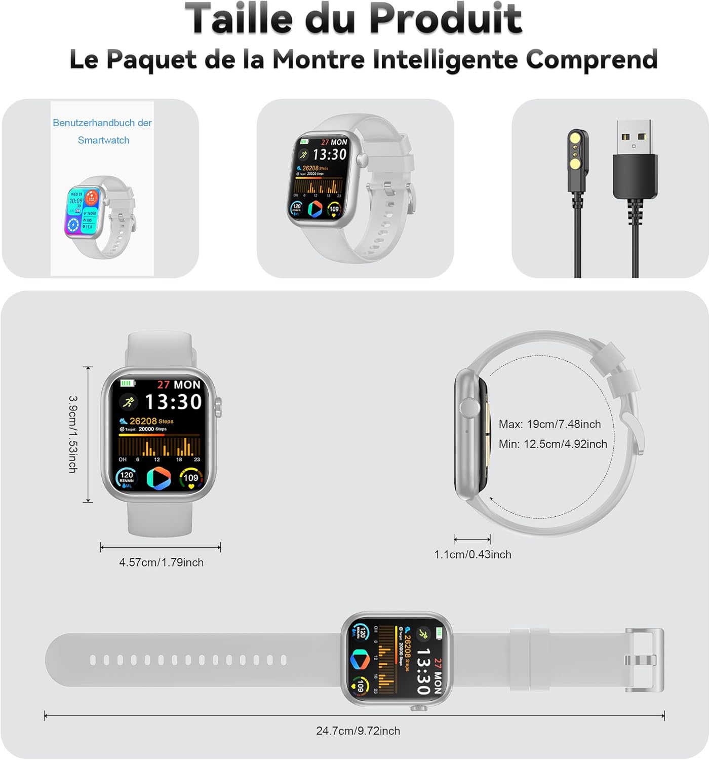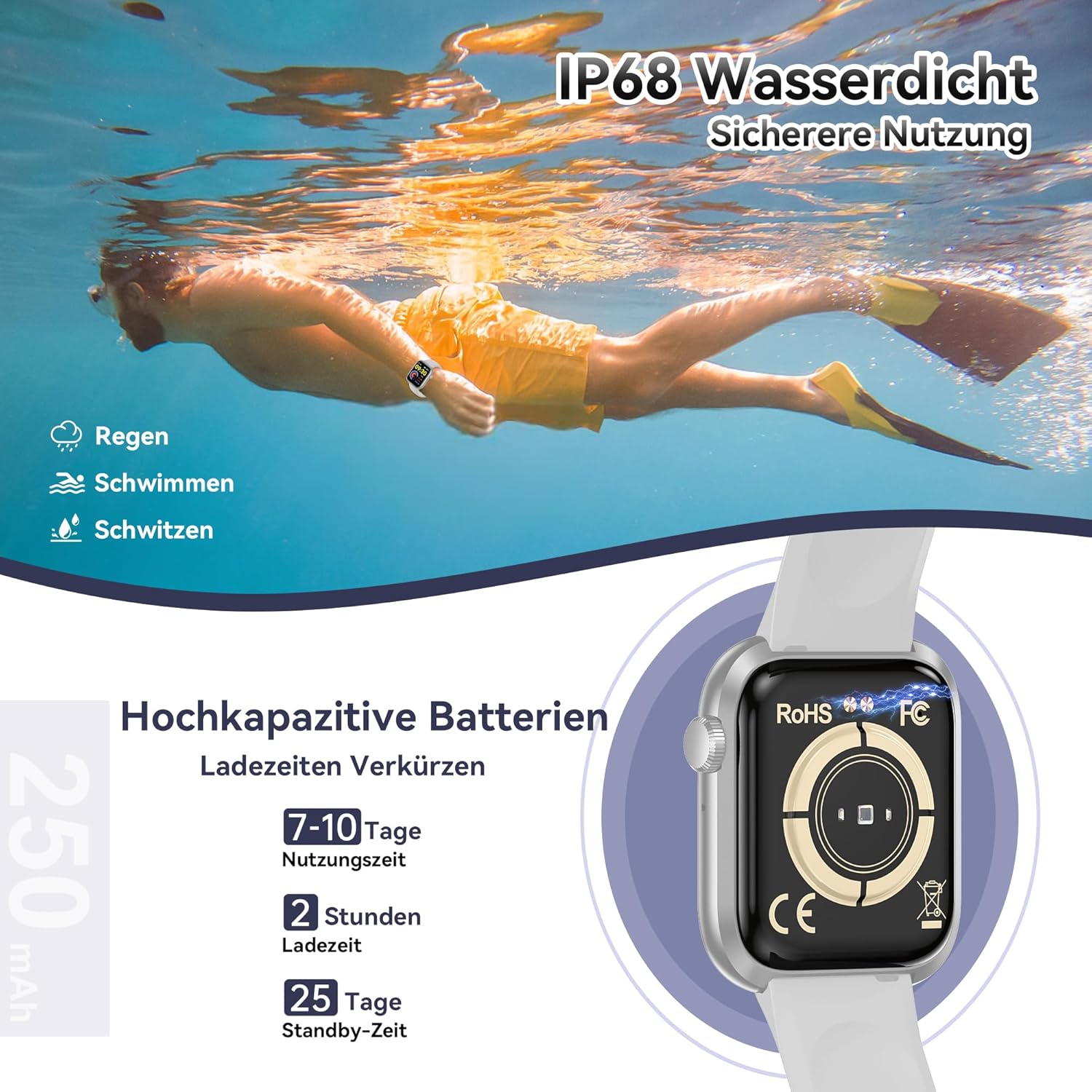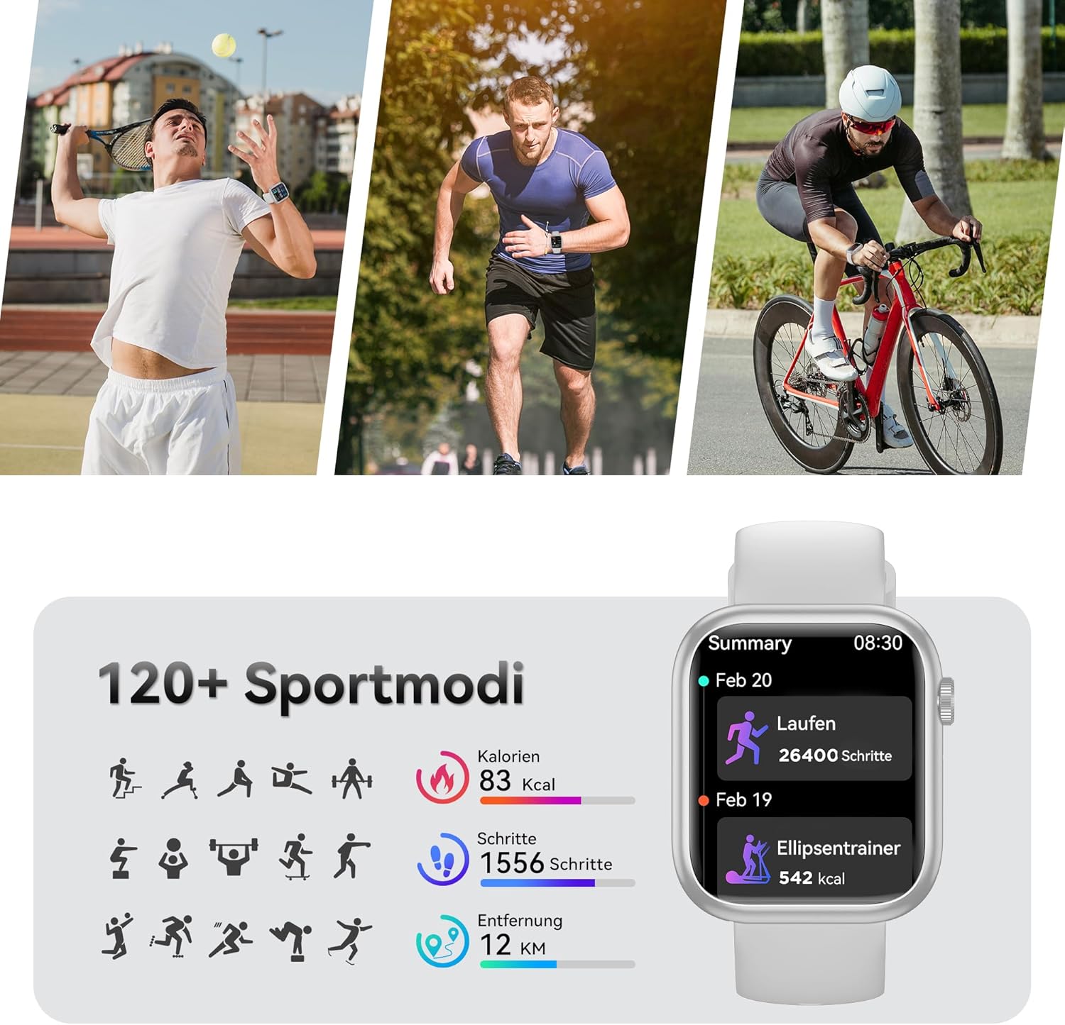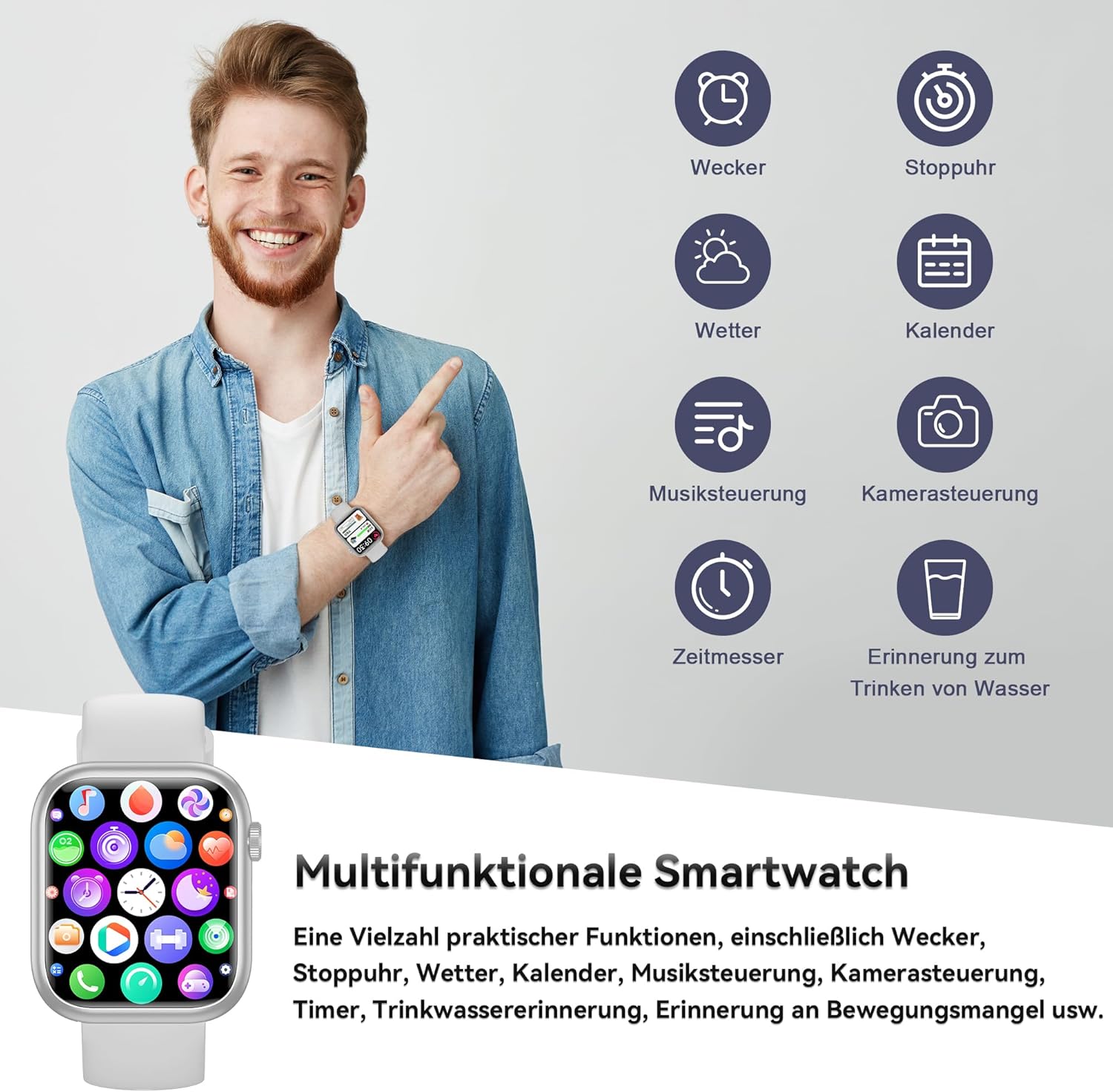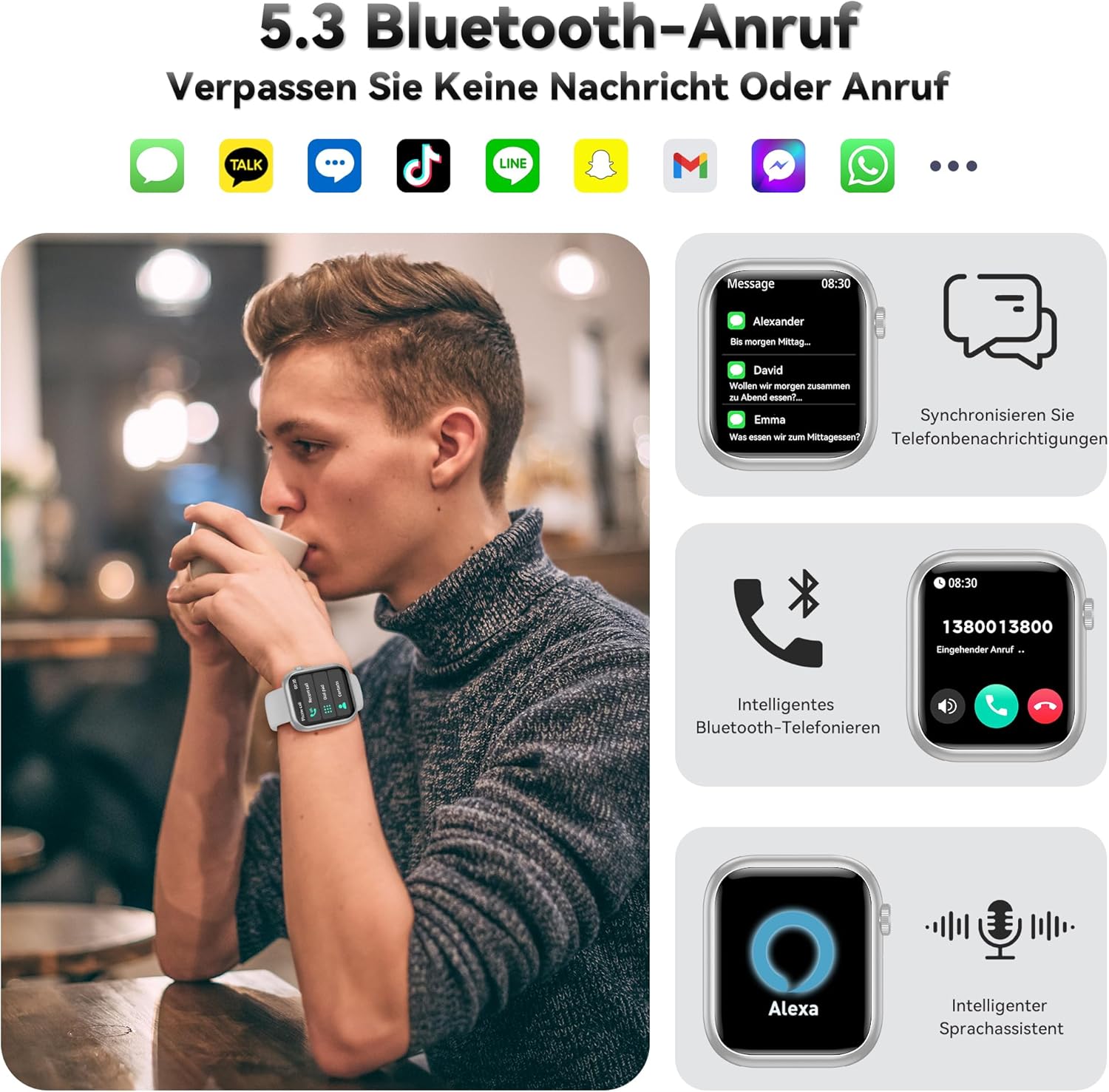 • Bluetooth телефония и известия: След Bluetooth връзка можете да отговаряте или да осъществявате повиквания директно чрез смарт часовника - идеално за в движение, по време на спорт или в офиса. Освен това, часовникът ви информира в реално време за съобщения от WhatsApp, Facebook, Instagram и др. Така че винаги можете да сте в крак с времето, без постоянно да гледате смартфона си.