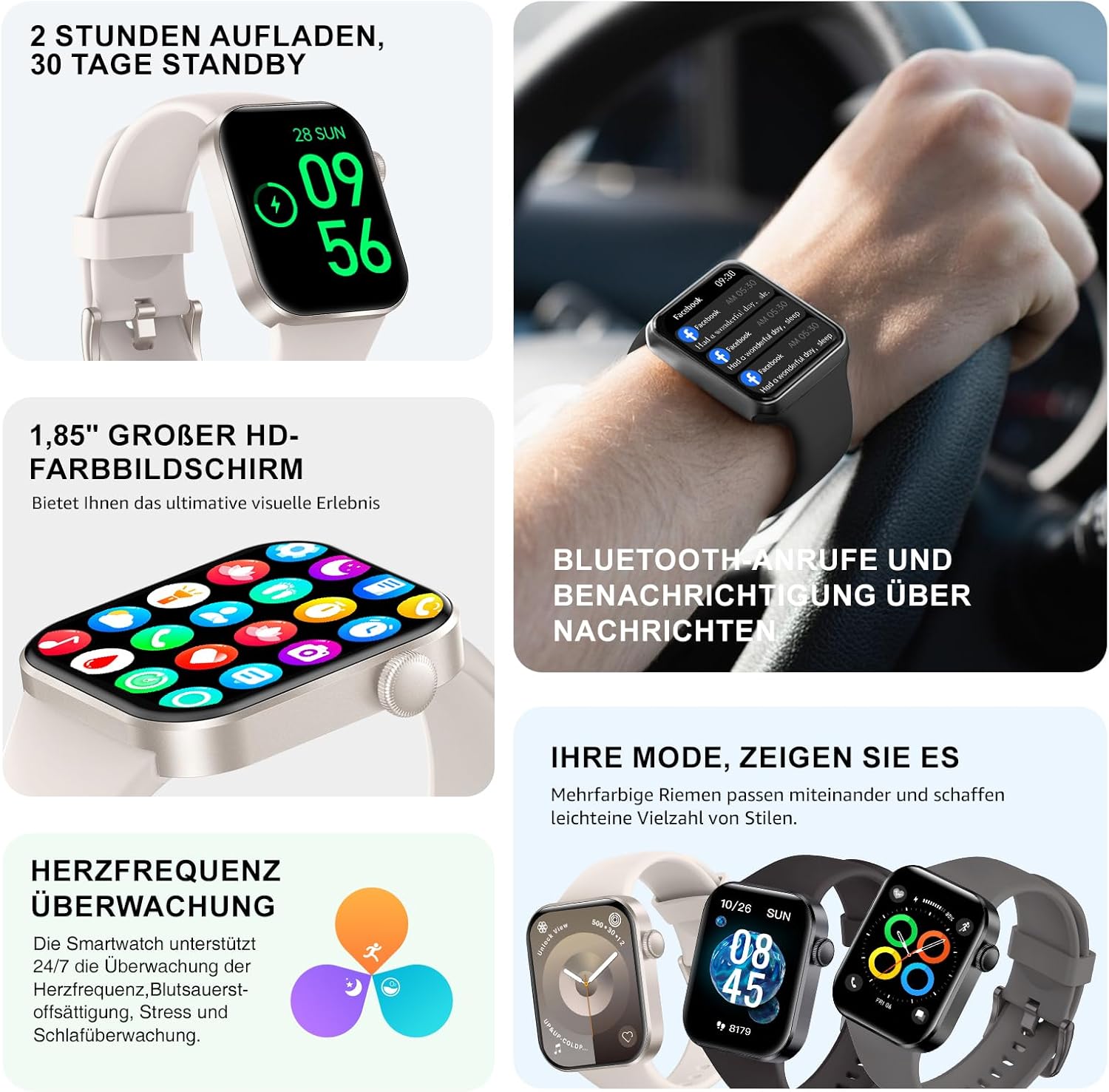 • 1,85-инчов елегантен дизайн и над 100 регулируеми циферблата: 1,85-инчов HD екран с висока резолюция 390 x 450 и регулируема яркост, така че екранът да е лесен за четене дори при ярка светлина. Персонализирайте циферблата според вашия личен стил с приложението [HBand]. Има над 100 циферблата, от които да избирате, и дори можете да използвате свои собствени снимки.