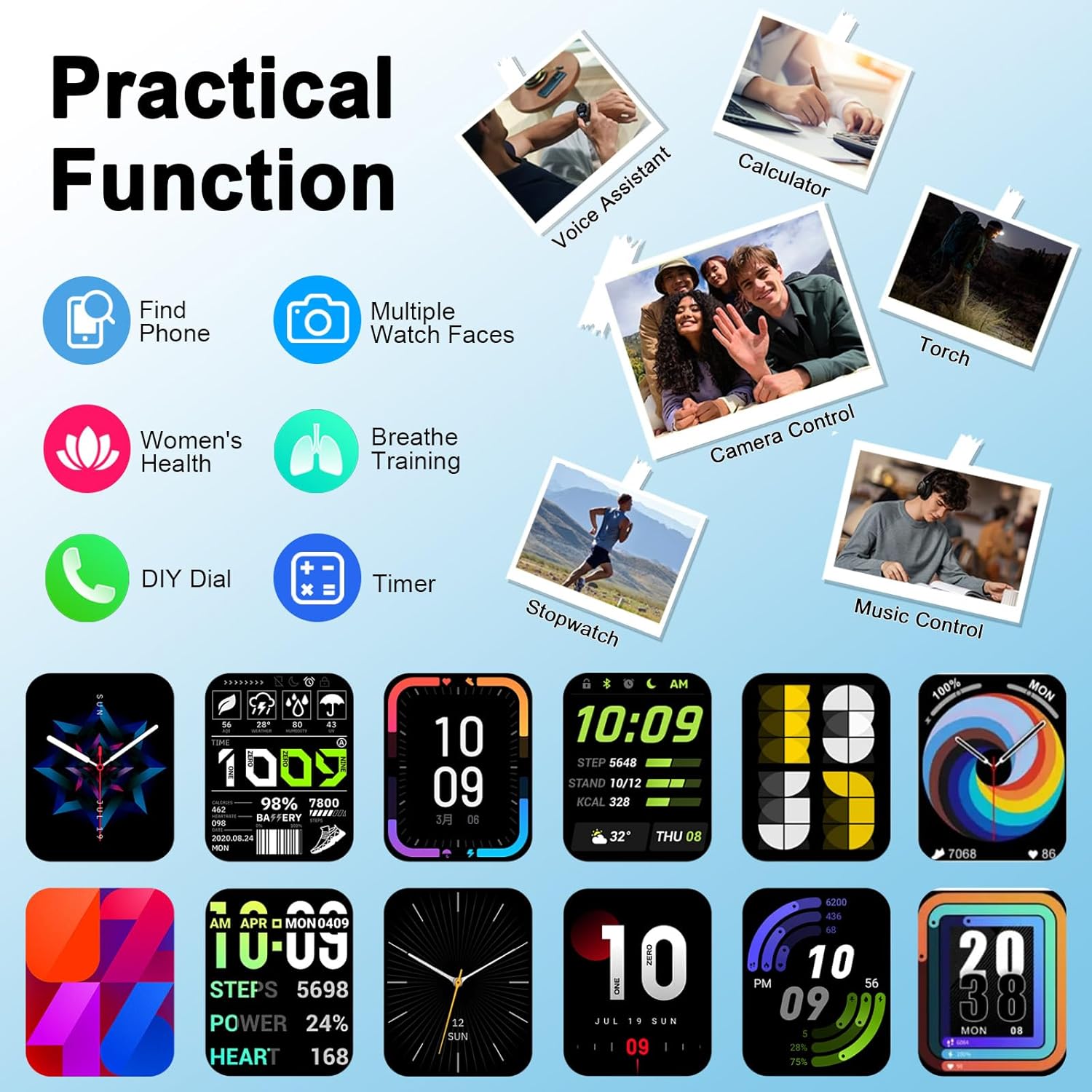 Смарт часовник за жени и мъже 1.91 инча HD смарт часовник с Bluetooth разговори, фитнес тракер крачкомер със 110+ спортни режима, монитор за сън SpO2 пулс, IP68 водоустойчив фитнес часовник за Android iOS