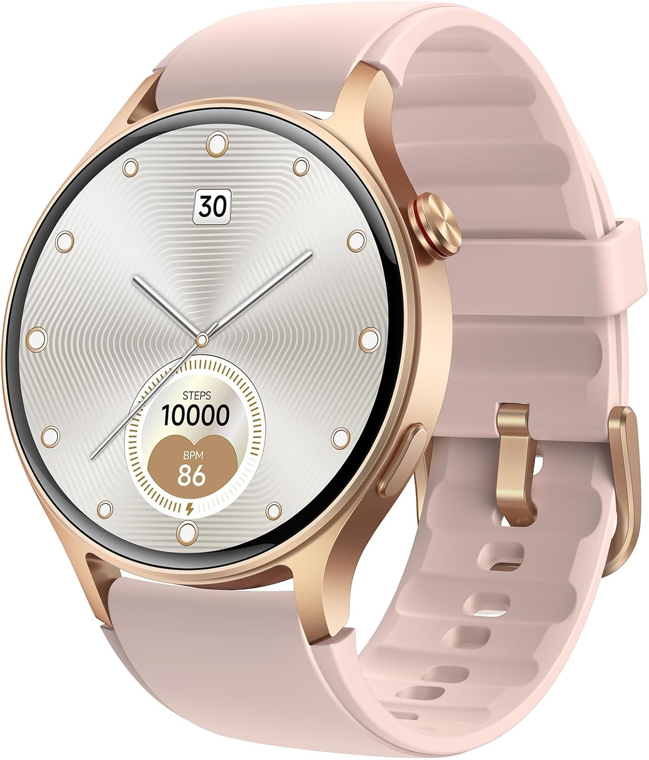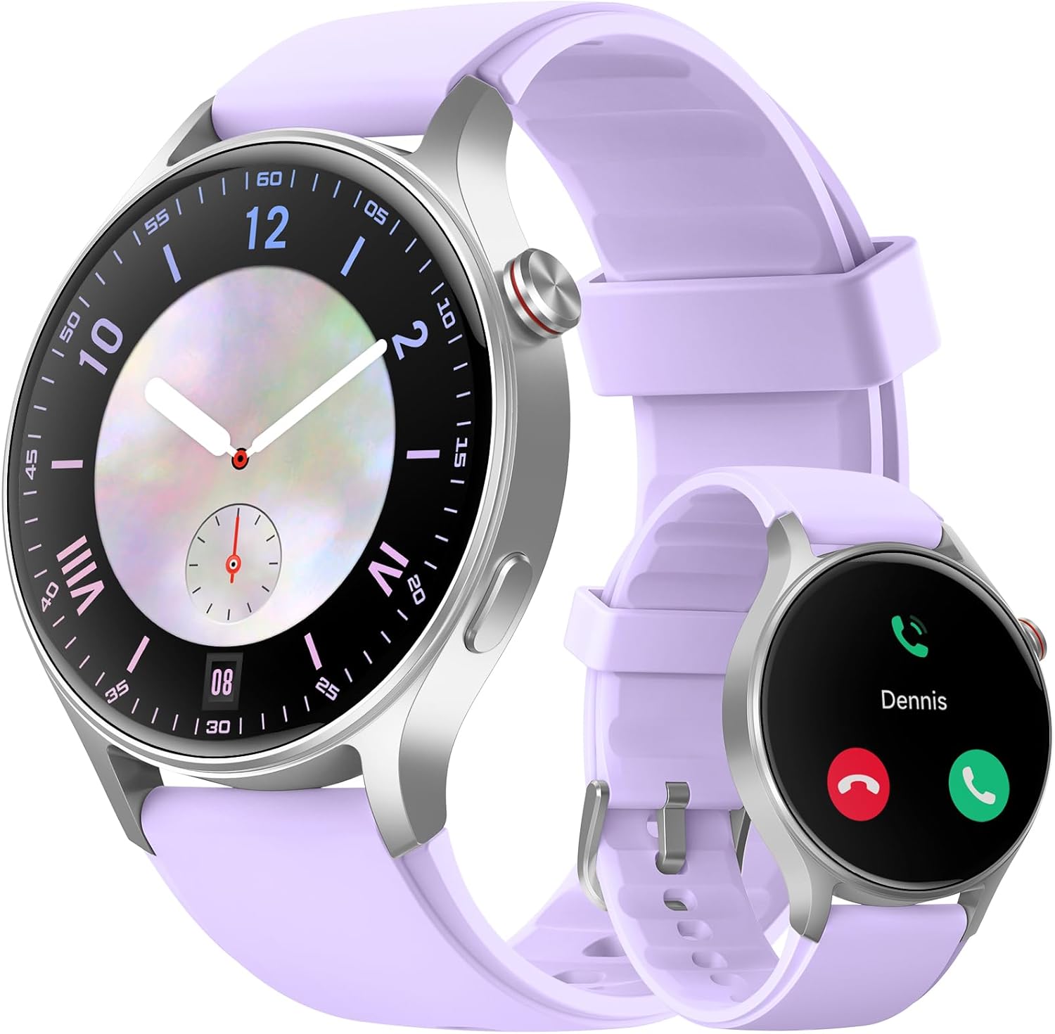 Смарт часовник за жени и мъже, кръгъл, с функция за телефон, AMOLED ултра ясен екран (диаметър 43 мм, 110+ спортни режима, SpO2 монитор за пулс, монитор за сън, 3ATM водоустойчив фитнес часовник за...