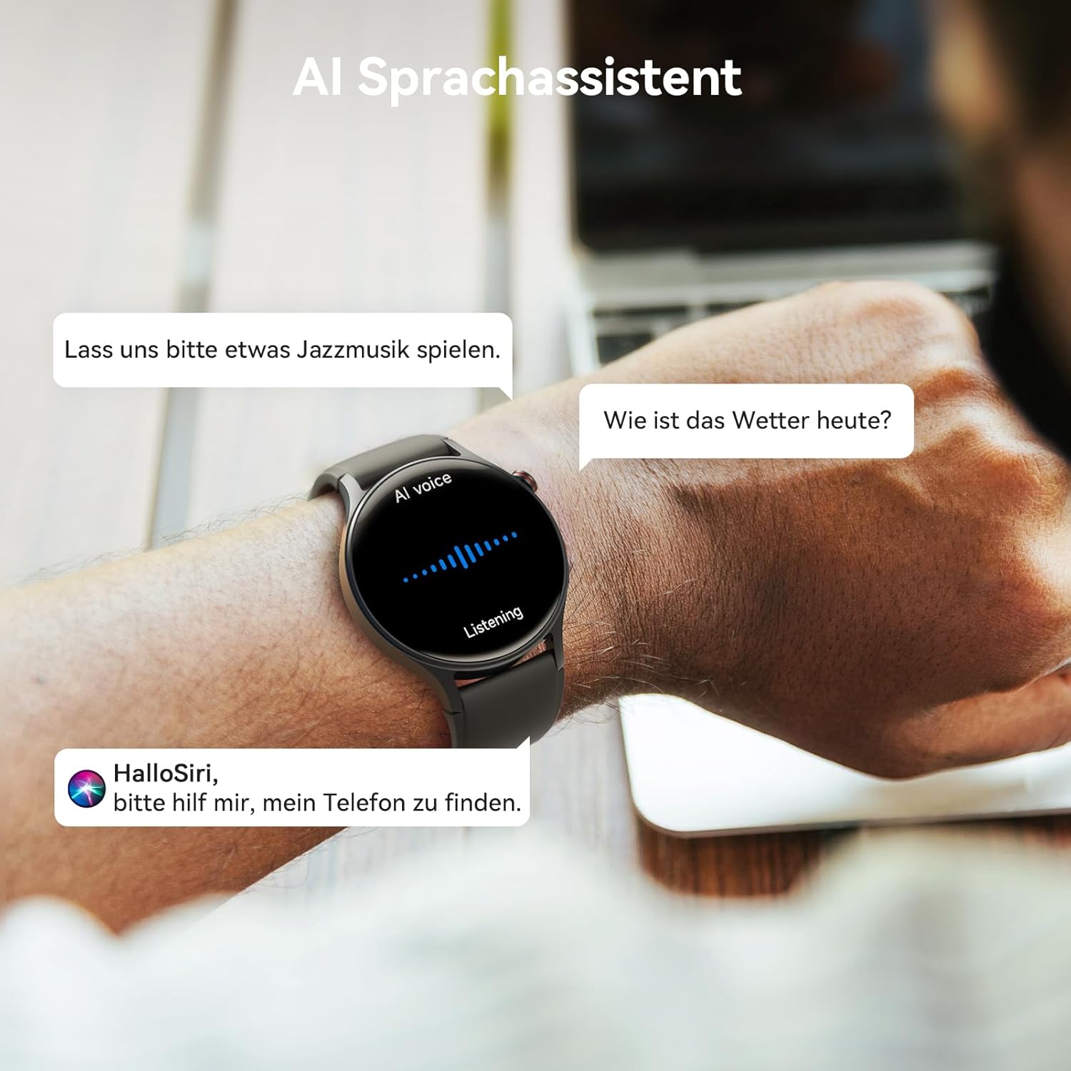 • Останете свързани в движение: смарт часовникът с функция за телефон осигурява ясно качество на разговорите чрез високоговорители и микрофони с висока резолюция и получава известия от SMS, имейл, социални приложения на Whatsapp.