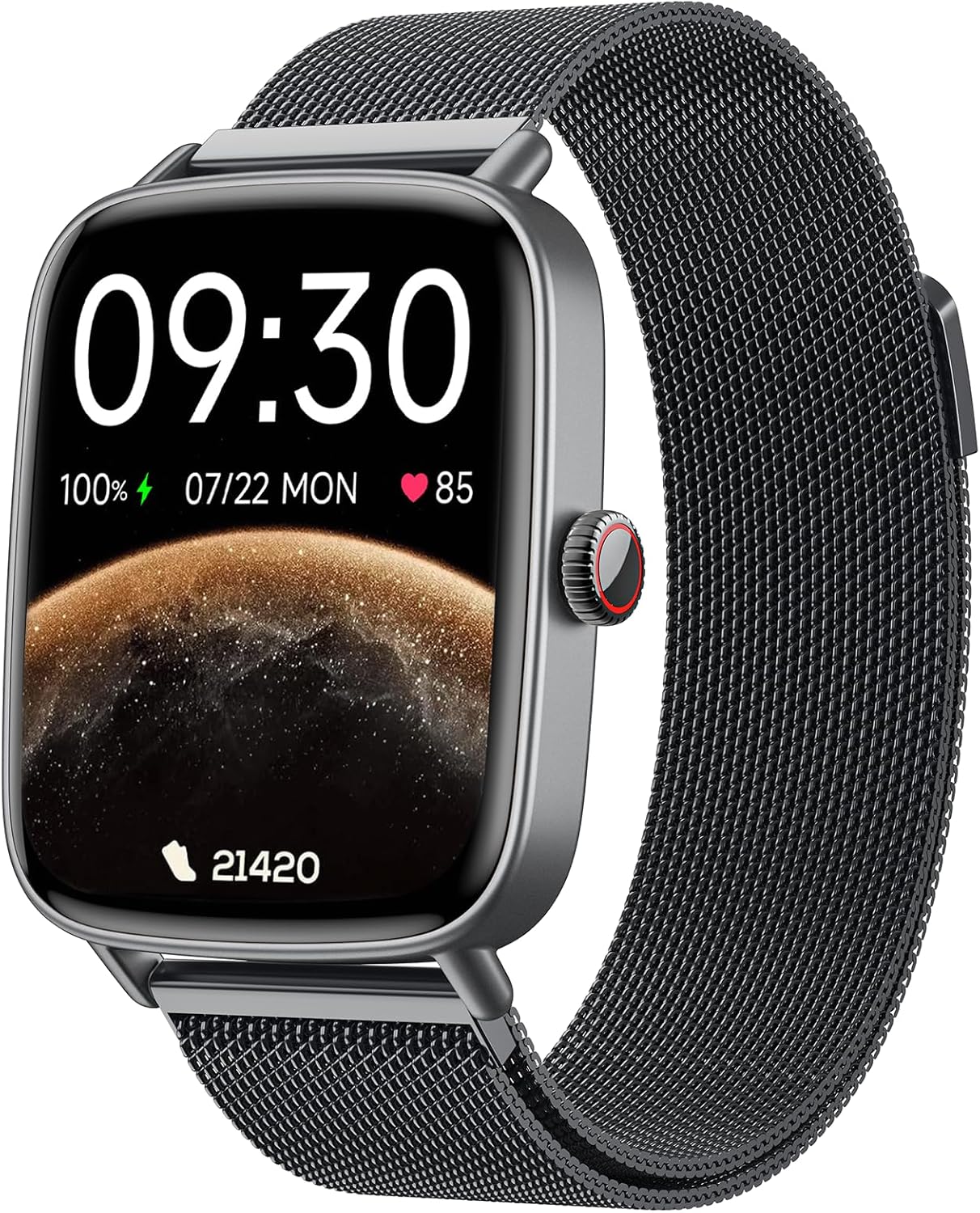 • Над 100 спортни режима и водоустойчивост IP68: фитнес часовникът поддържа над 100 спортни режима, включително бягане, туризъм, колоездене и йога. Фитнес тракерът точно записва калориите и разстоянието ви. Смарт часовникът е водоустойчив IP68. Можете да го носите ежедневно, докато миете ръцете си, лицето си или се изпотявате.