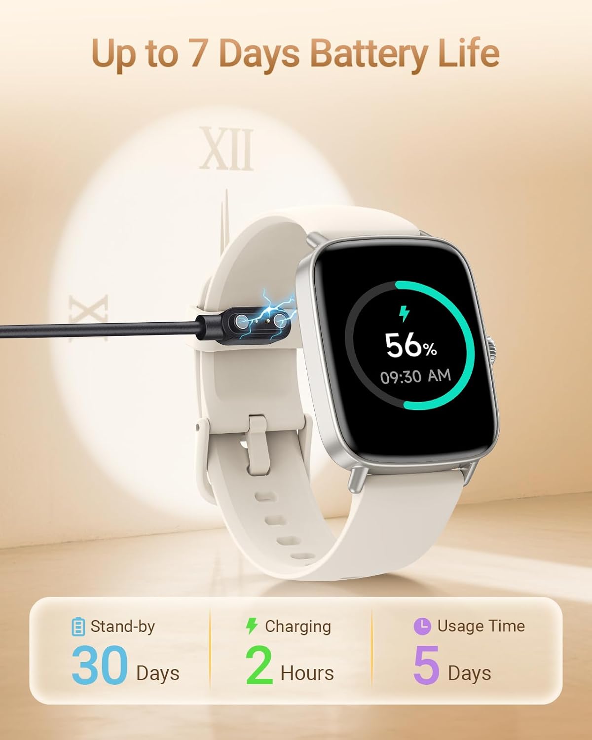 • 【350mAh Дълъг живот на батерията и многофункционалност】Този смарт часовник има батерия 350mAh, 2,5 часа бързо зареждане, 5-7 дни активна употреба и 30 дни в режим на готовност. Съвместим с iOS 12.0 / Android 6.0 и по-нови версии. Вашият универсален помощник: проследяване на менструалния цикъл, дихателни упражнения, прогноза за времето, управление на музика и камера, търсене на телефон, калкулатор, календар.