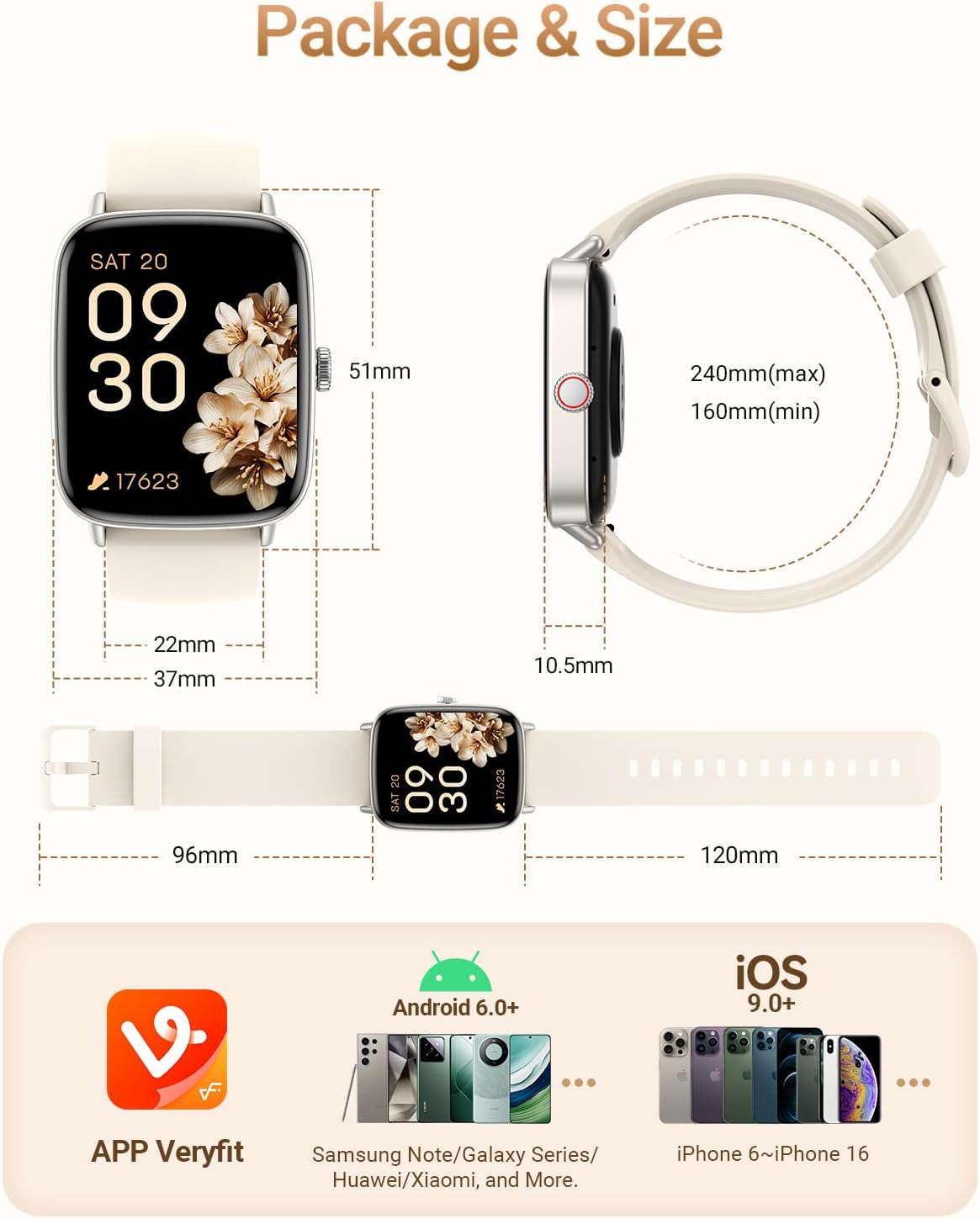 • 【1,85" HD екран и персонализируеми циферблати】: Смарт часовникът за Android iOS смартфони е оборудван с 1,85-инчов HD екран. Поддържа 100 красиви облачни циферблата от приложението "Veryfit".