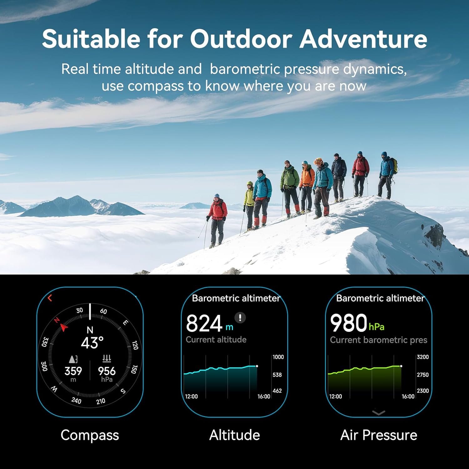 Смарт часовник за мъже и жени Jugeman с функция за телефон, 2.06-инчов AMOLED фитнес часовник, 5ATM водоустойчив GPS фитнес тракер, пулсомер, монитор за сън, SOS повикване/крачкомер, 110+ спортни режима, компас
