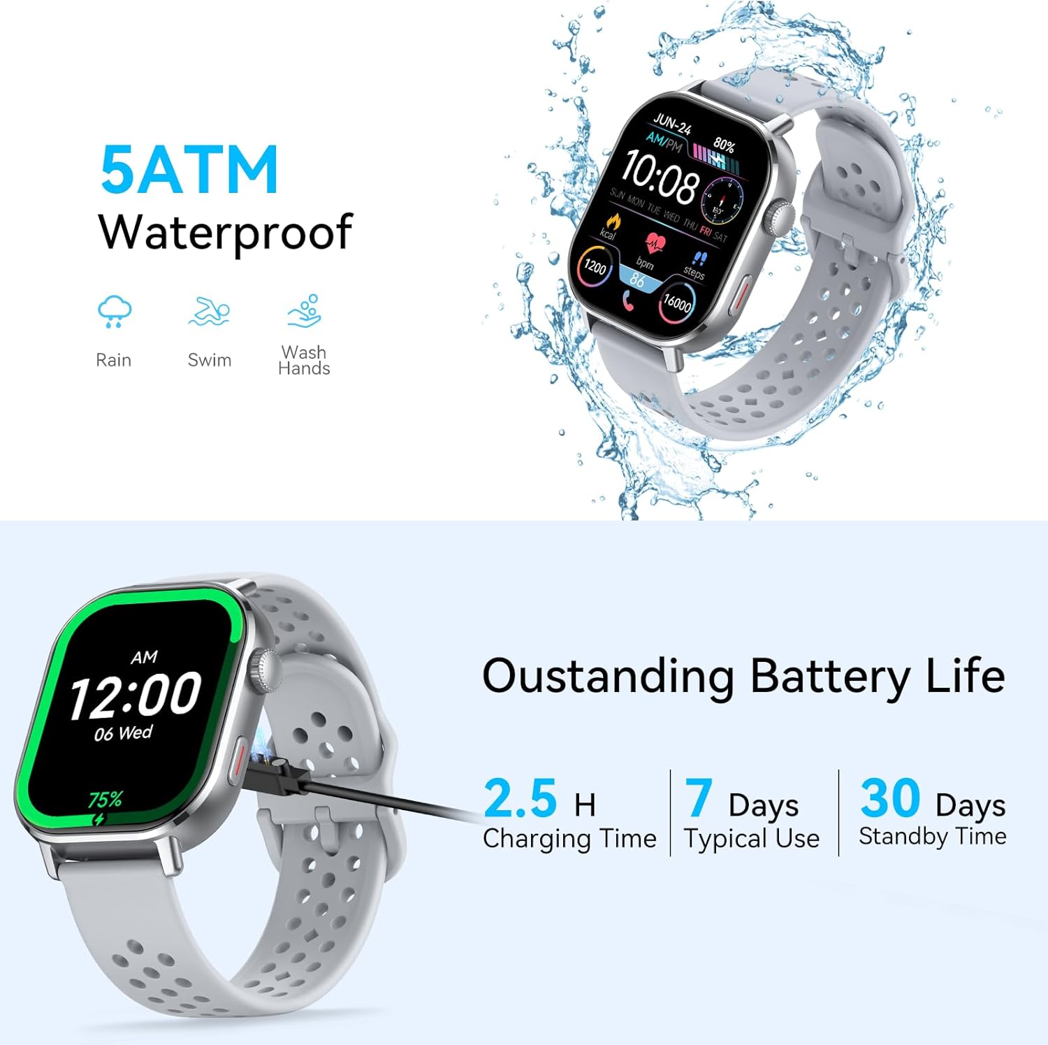 • 113+ СПОРТНИ РЕЖИМА И ВОДОУСТОЙЧИВОСТ IP68: Постигнете фитнес целите си с над 113 спортни режима, съобразени с вашата тренировка. Часовникът за жени следи изгорените калории, стъпките, времето за тренировка и разстоянието за различни дейности. Освен това, тракерите за активност и смарт часовниците са създадени да издържат на вода до IP68. Можете да носите часовника, за да си миете ръцете, без да се притеснявате за щети от вода, за да задоволите по-добре ежедневните си нужди.