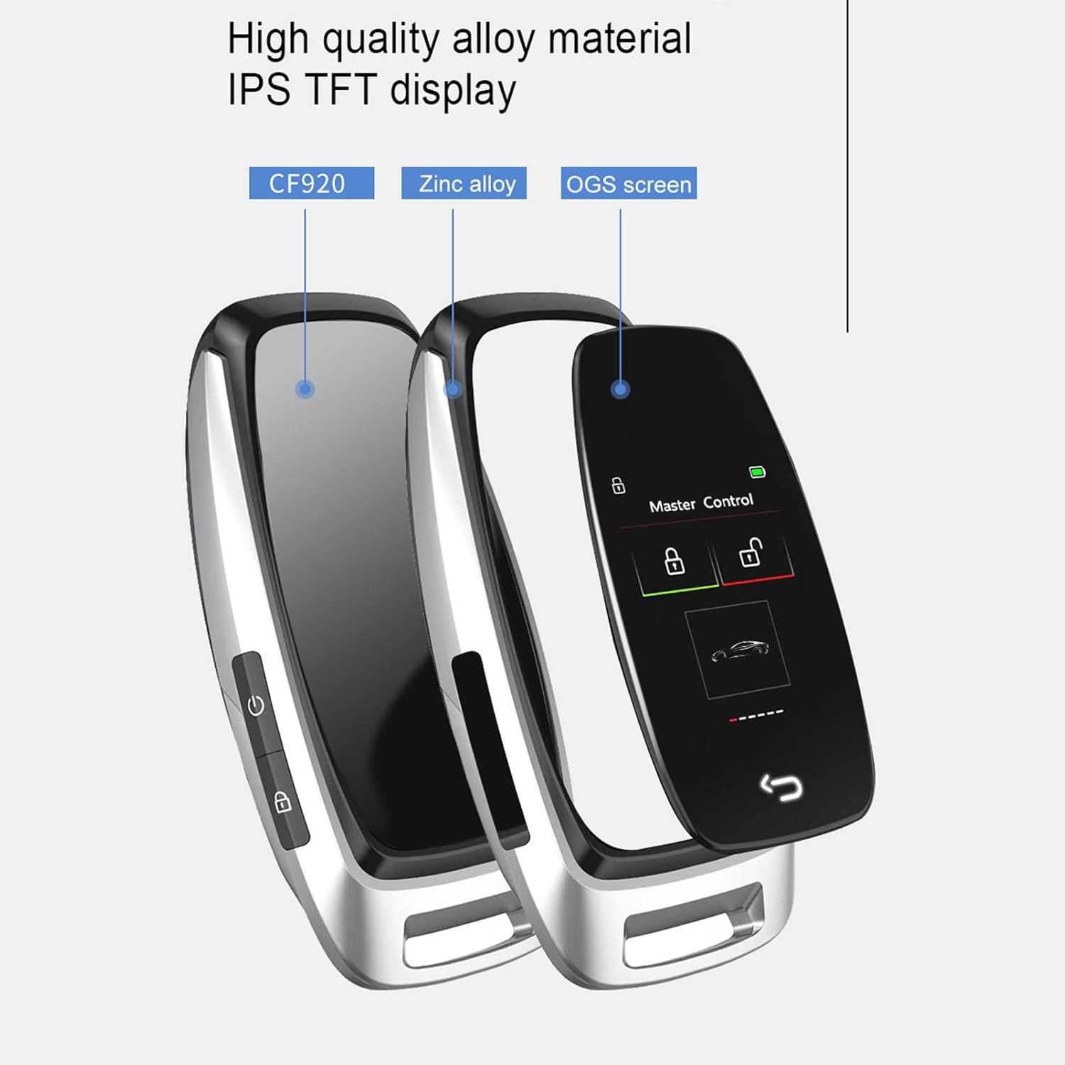 Смарт LCD ключ за кола с тъчскрийн 5.0 свързаност и безопасност за всички собственици на автомобили, цинкова сплав (черен)
