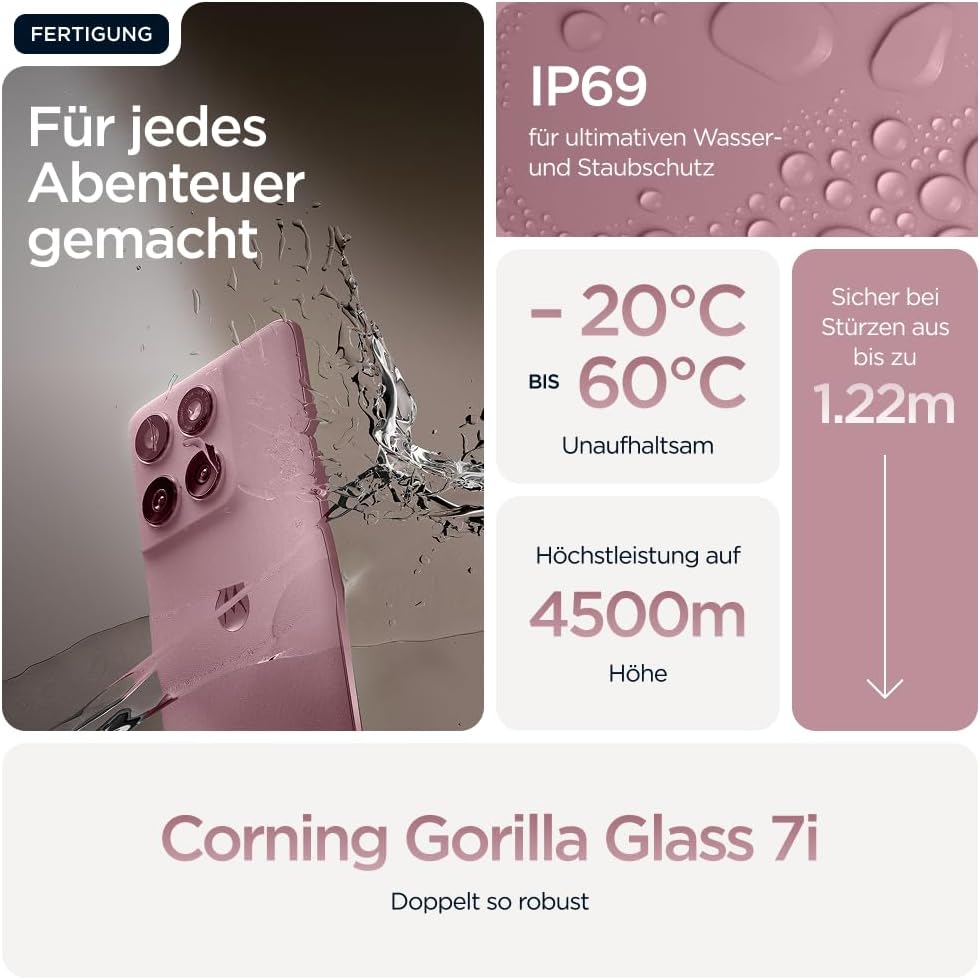 • Изключително качество на изработка; изисканият, изтънчен дизайн е добре защитен от падания, екстремни температури и вода