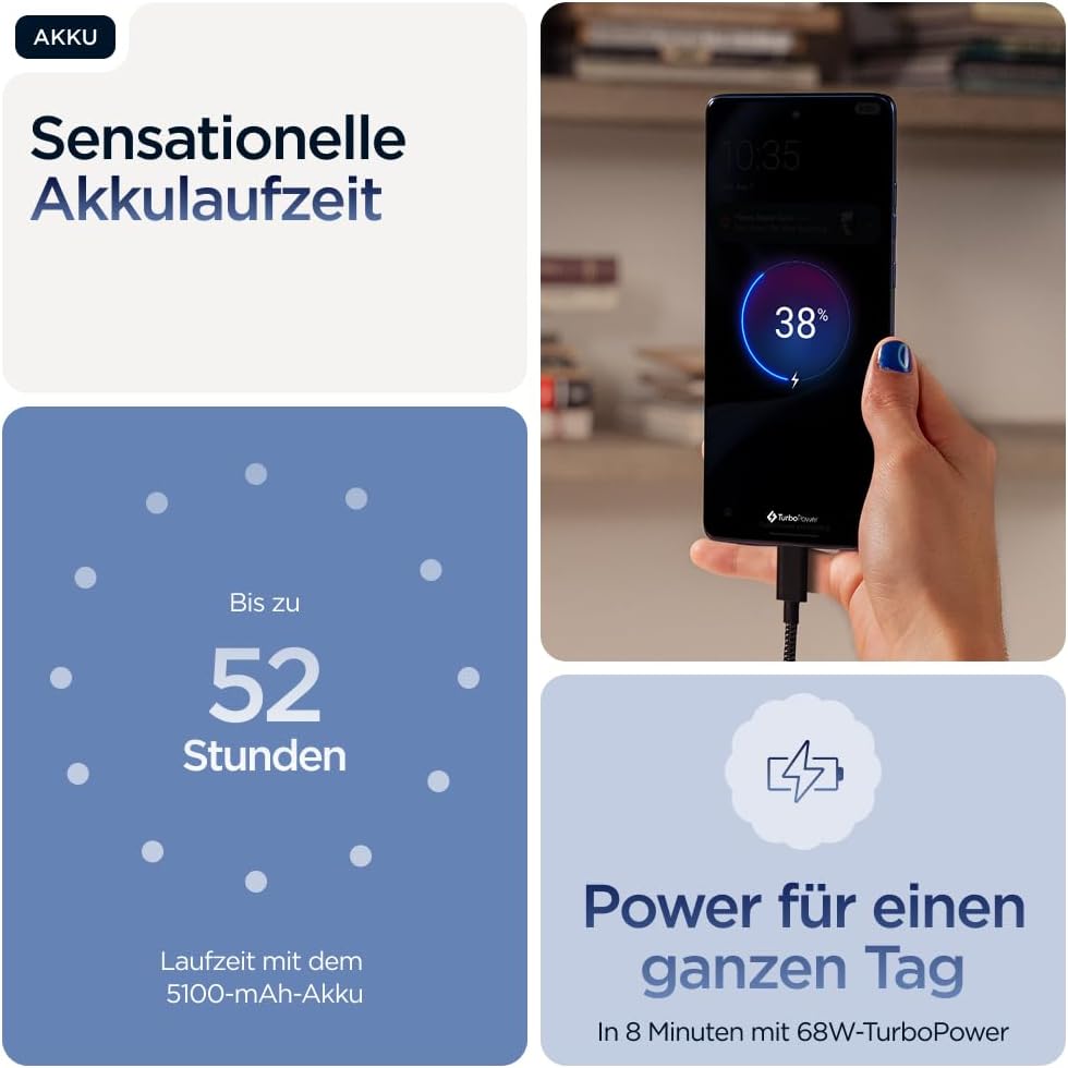 • Захранване на батерията за целия ден само за 8 минути. Зареждайте по-бързо - чакайте по-малко благодарение на невероятната скорост на 68W TurboPower зареждане (продава се отделно)