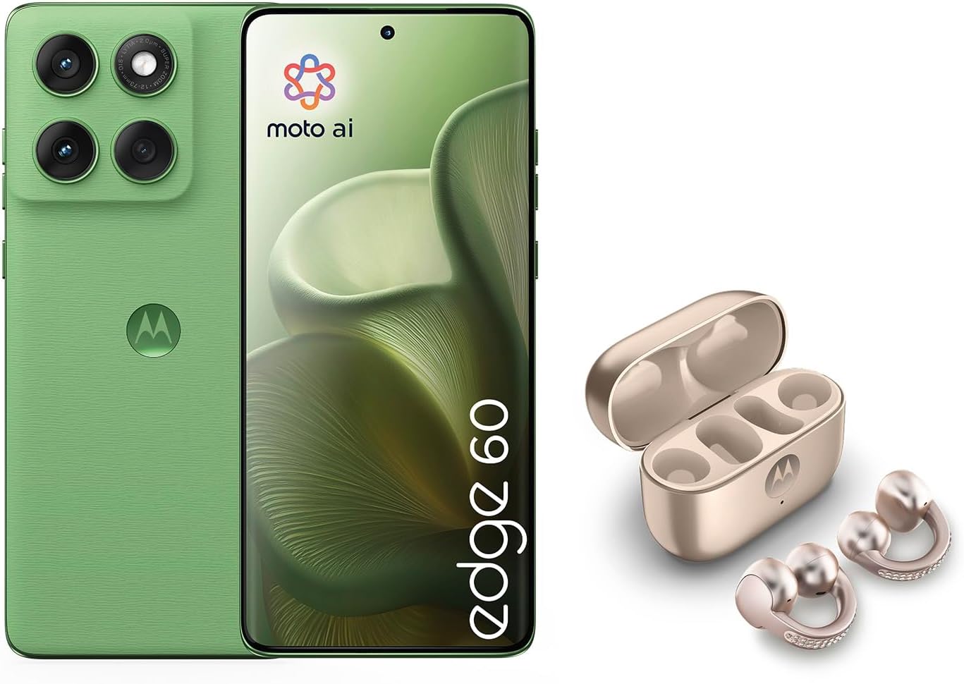 Смартфон Motorola Edge 60 Pantone Shamrock + слушалки Moto Buds Loop Fresh Oak с кристали Swarovski
