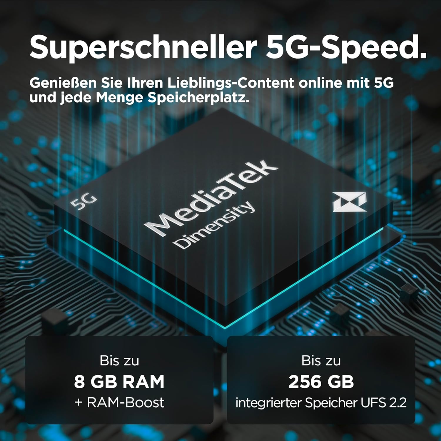 • 256GB вътрешна памет. Така че имате достатъчно място за вашите снимки, филми, песни и приложения. Не е ли достатъчно? Тогава просто го разширете с microSD карта до 1 TB.