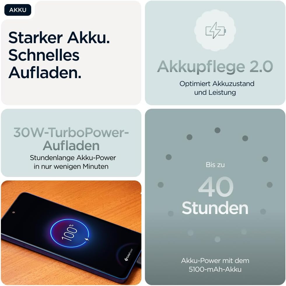• 41 часа живот на батерията и бързо зареждане; мощност за всяко приключение - с дълготрайната батерия от 5100 mAh и 30 W TurboPower зареждане