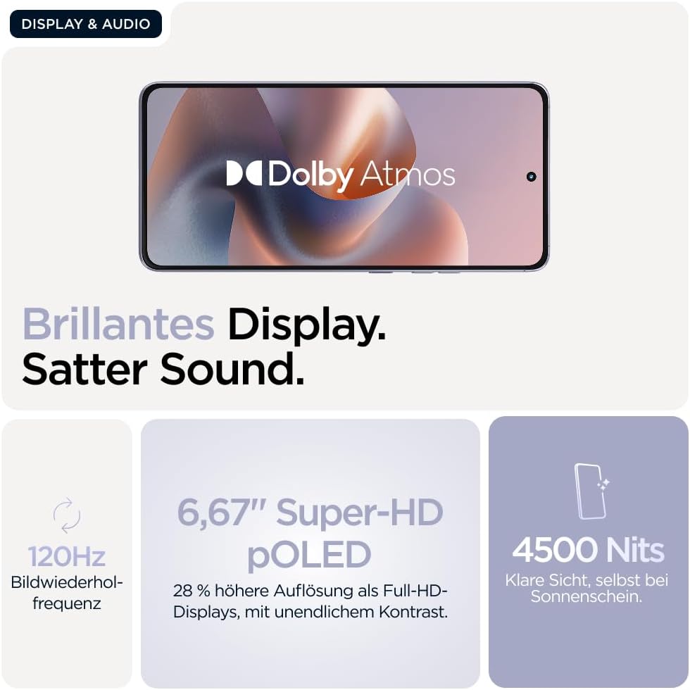 • Ултраярък 6,67-инчов Super HD дисплей и Dolby Atmos; изживейте над милиард нюанса на ултраяркия 10-битов дисплей - подкрепен от многоизмерен звук