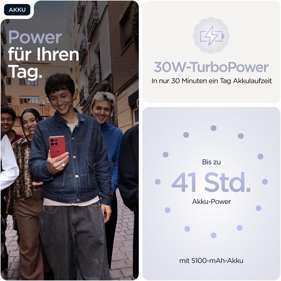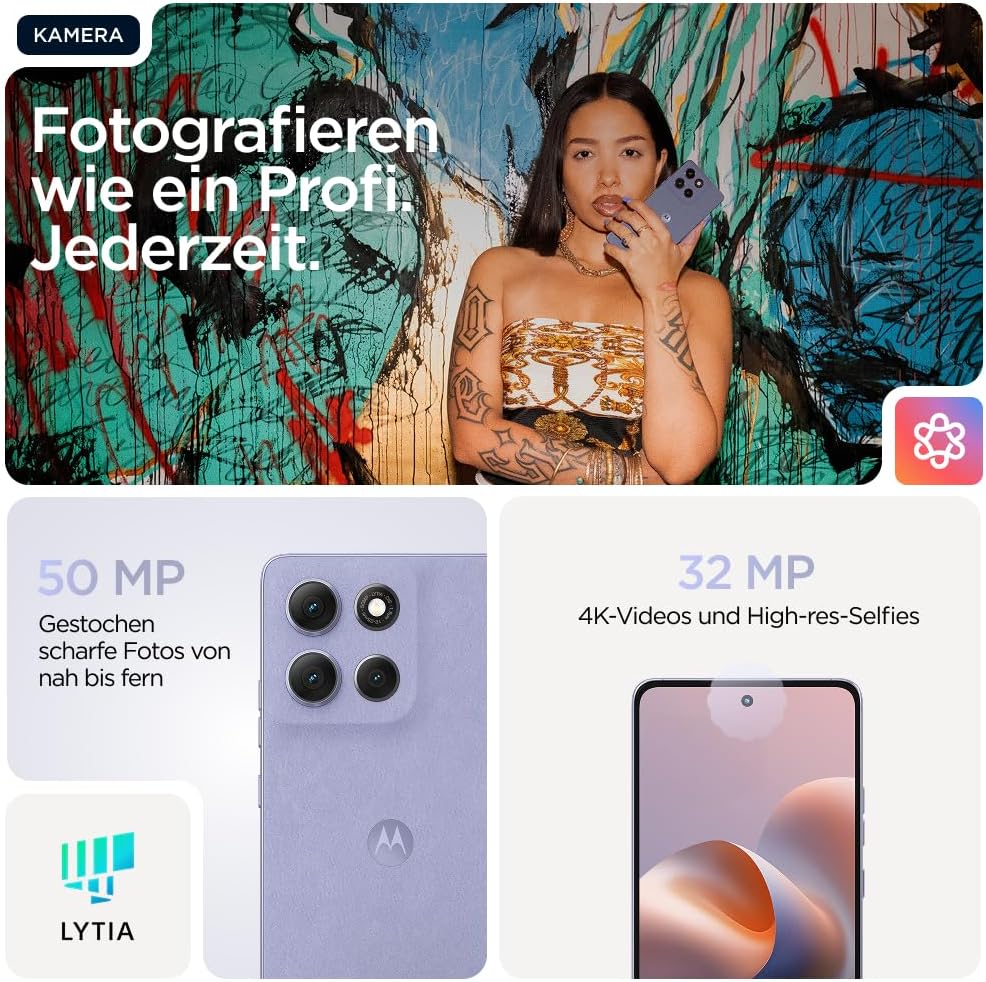 • Изключителни снимки благодарение на Sony LYTIA; правете зашеметяващи снимки с 50MP камерата Sony LYTIA 600 с поддръжка на Moto AI и снимайте без усилие като професионалист.