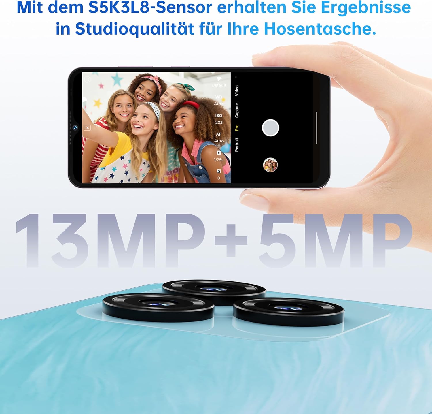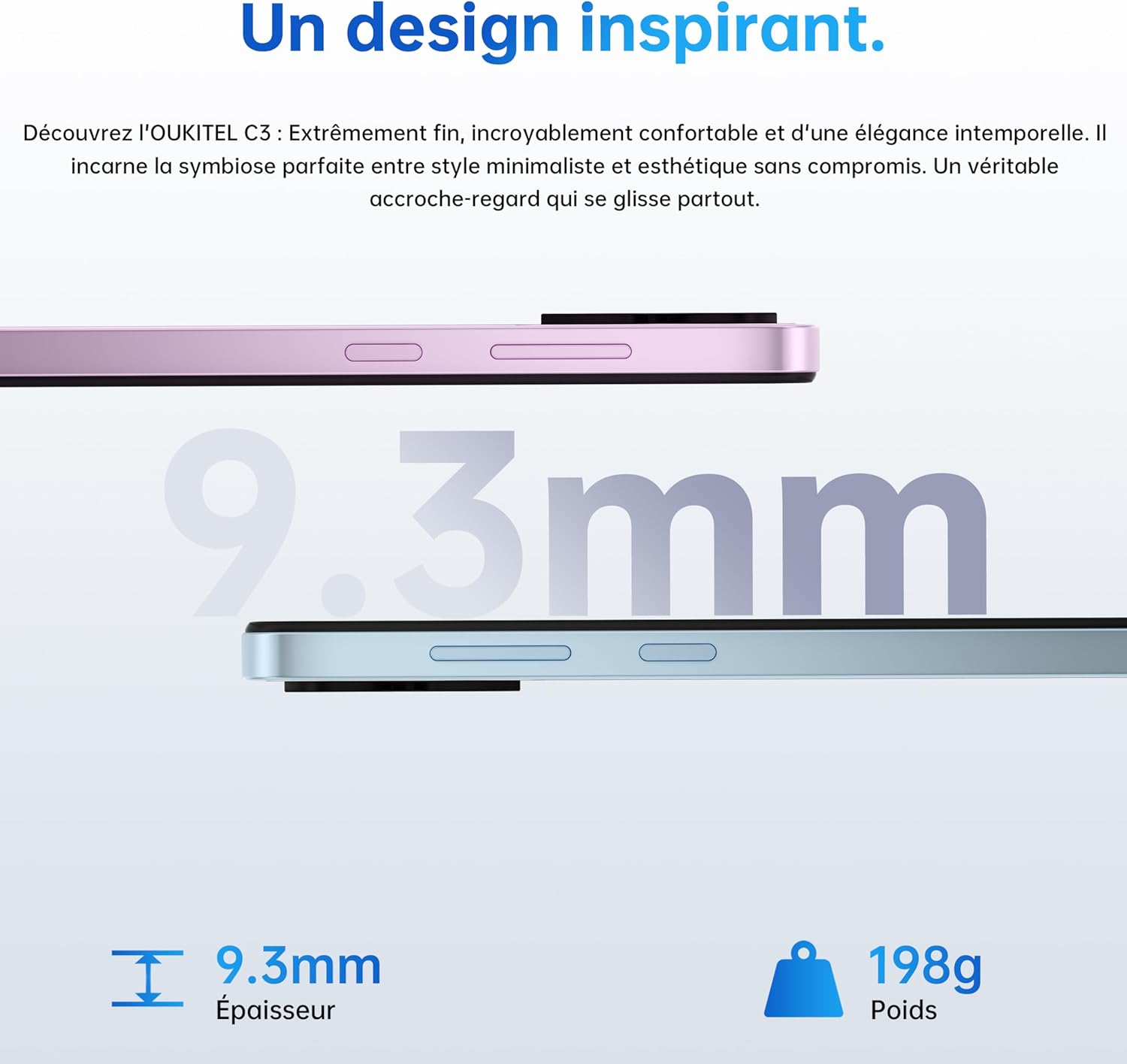 • 4 цвята: черно, златисто, розово, синьо. Смартфонът OUKITEL C3 се предлага в четири очарователни цвята — класическо черно, елегантно златисто, очарователно розово и хладно синьо — за да съответства перфектно на вашата индивидуалност и стил. Елегантният му профил и ергономичният му дизайн осигуряват удобен захват, пасва идеално в дланта ви за лесно управление с една ръка и плавно потребителско изживяване. Независимо дали разглеждате приложения, правите снимки или осъществявате разговори, OUKITEL C3 е повече от просто инструмент, той е удоволствие.