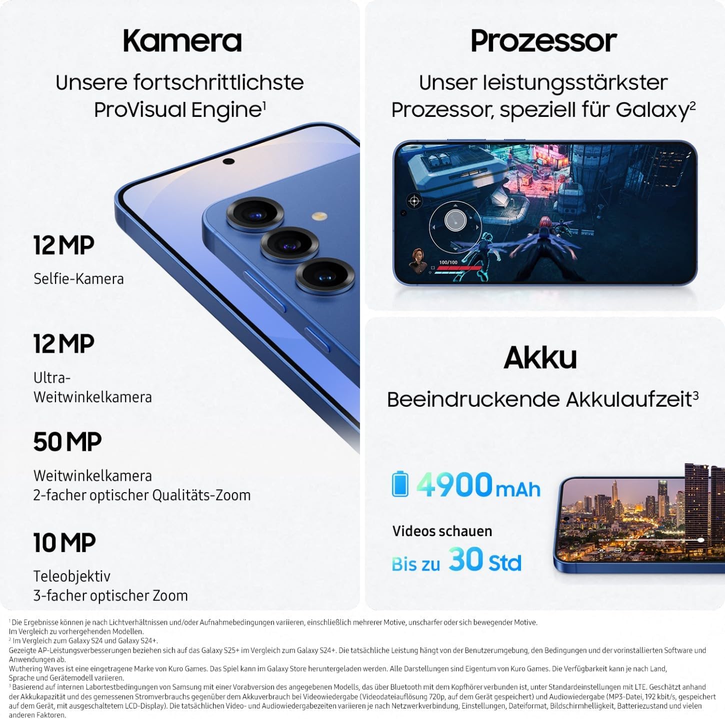 Смартфон Samsung Galaxy S25+ AI с Galaxy AI, без договор, мобилен телефон с Android, 12 GB RAM, 256 GB памет, 50 MP камера, Icyblue