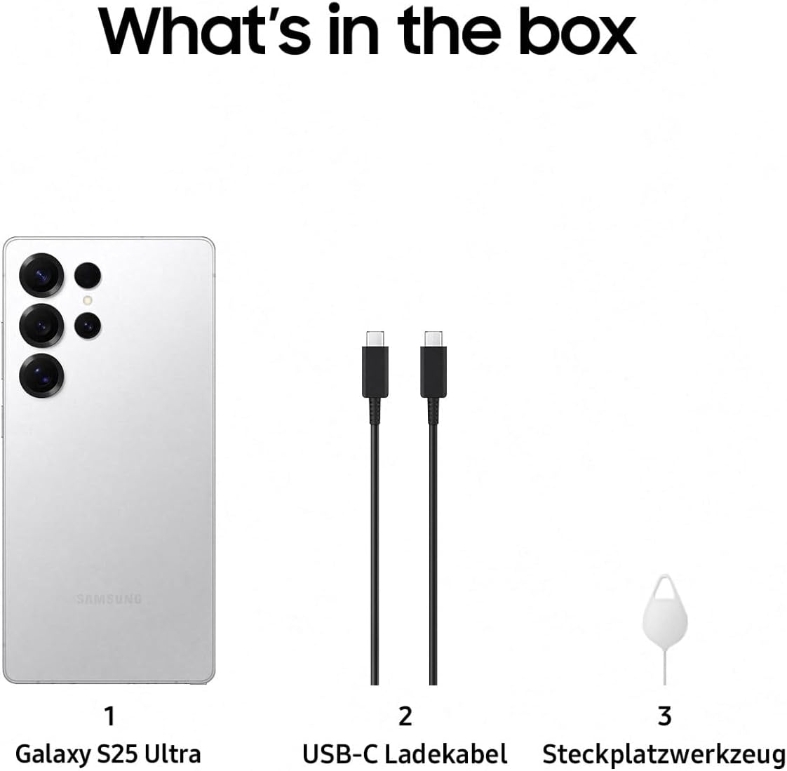 Смартфон Samsung Galaxy S25 Ultra AI с Galaxy AI, без договор, мобилен телефон с AI и Android, 12GB RAM, 1TB памет, 200MP камера, титаниево бяло-сребристо, 3 години гаранция от производителя