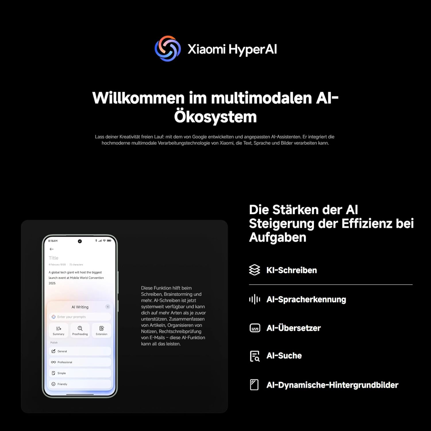 • Xiaomi HyperAI: Интелигентна технология, задвижвана от изкуствен интелект, за оптимизирана камера, по-интелигентна производителност и плавно потребителско изживяване без забавяния, задвижвана от Xiaomi HyperOS 2.0
