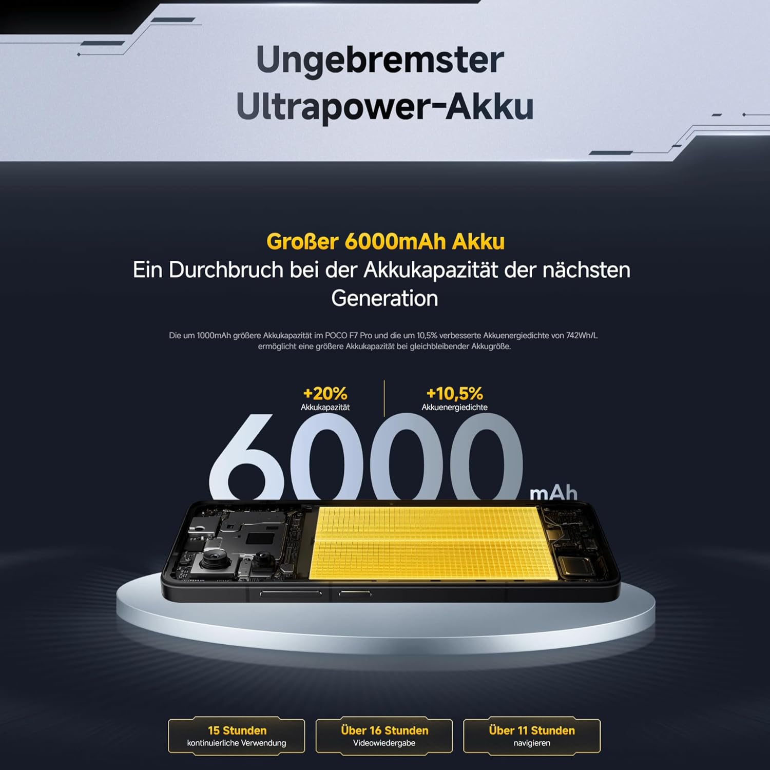 Смартфон XIAOMI Poco F7 Pro, 12 + 256 GB, черен, мобилен телефон без договор, 50 MP, 120 Hz AMOLED дисплей, процесор Snapdragon, батерия 6000 mAh, 90 W HyperCharge, HyperAI, две SIM карти