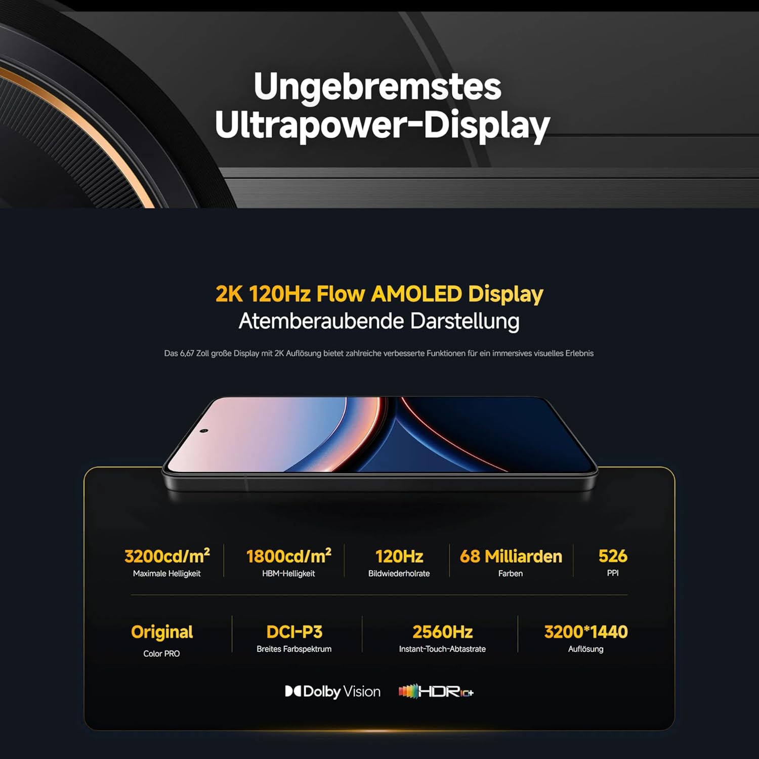 Смартфон XIAOMI Poco F7 Ultra, 12 + 256 GB, черен, мобилен телефон без договор, 50 MP, 120 Hz AMOLED дисплей, флагмански процесор Snapdragon, батерия 5300 mAh, 120 W HyperCharge, HyperAI, две SIM карти