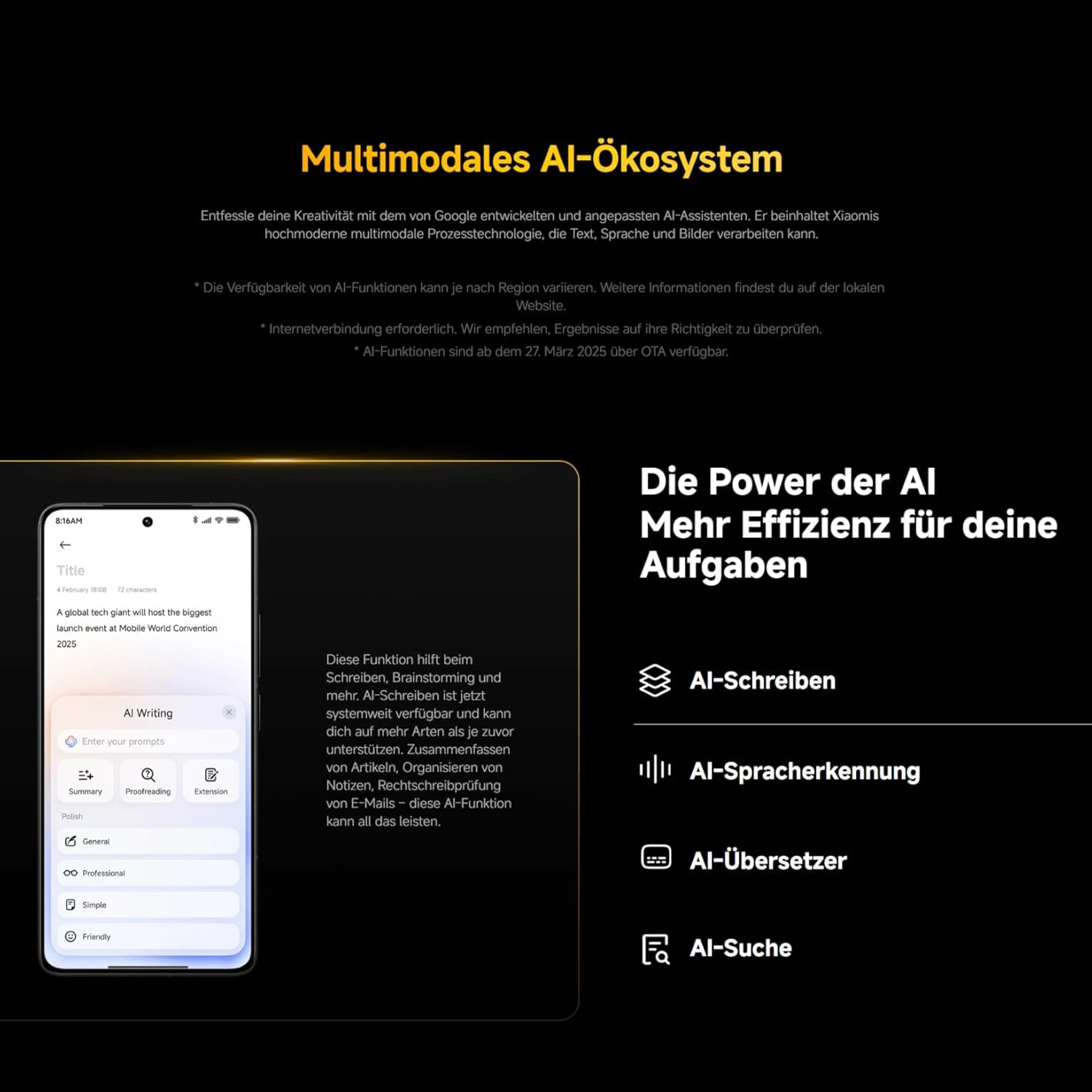 • Xiaomi HyperAI: Освободете креативността си с AI асистент, задвижван и персонализиран от Google. Той безпроблемно интегрира усъвършенстваната мултимодална технология за обработка на Xiaomi, която може без усилие да обработва текст, реч и изображения.