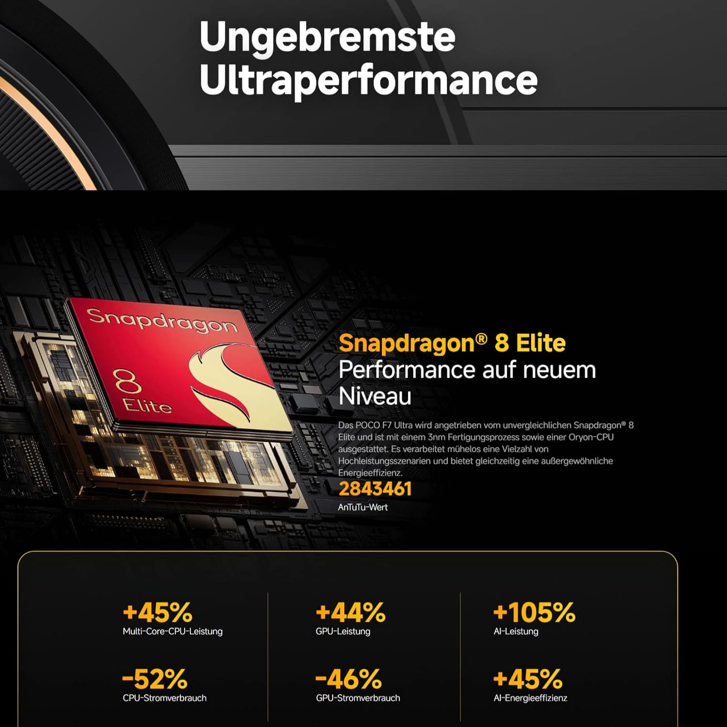 Смартфон XIAOMI Poco F7 Ultra, 16 + 512 GB, жълт, мобилен телефон без договор, 50 MP, 120 Hz AMOLED дисплей, флагмански процесор Snapdragon, батерия 5300 mAh, 120 W HyperCharge, HyperAI, две SIM карти