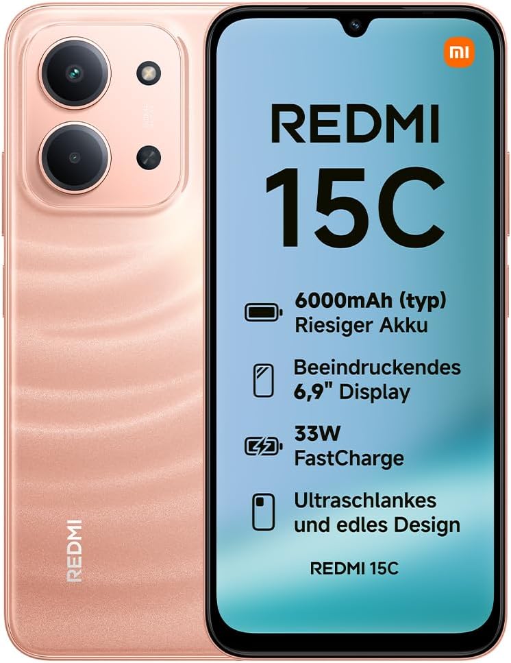 Смартфон Xiaomi Redmi 15C 4 GB + 256 GB, 6.9-инчов 120 Hz дисплей, 50 MP AI двойна камера, 6000 mAh батерия, 7.99 мм тънък, Twilight Orange