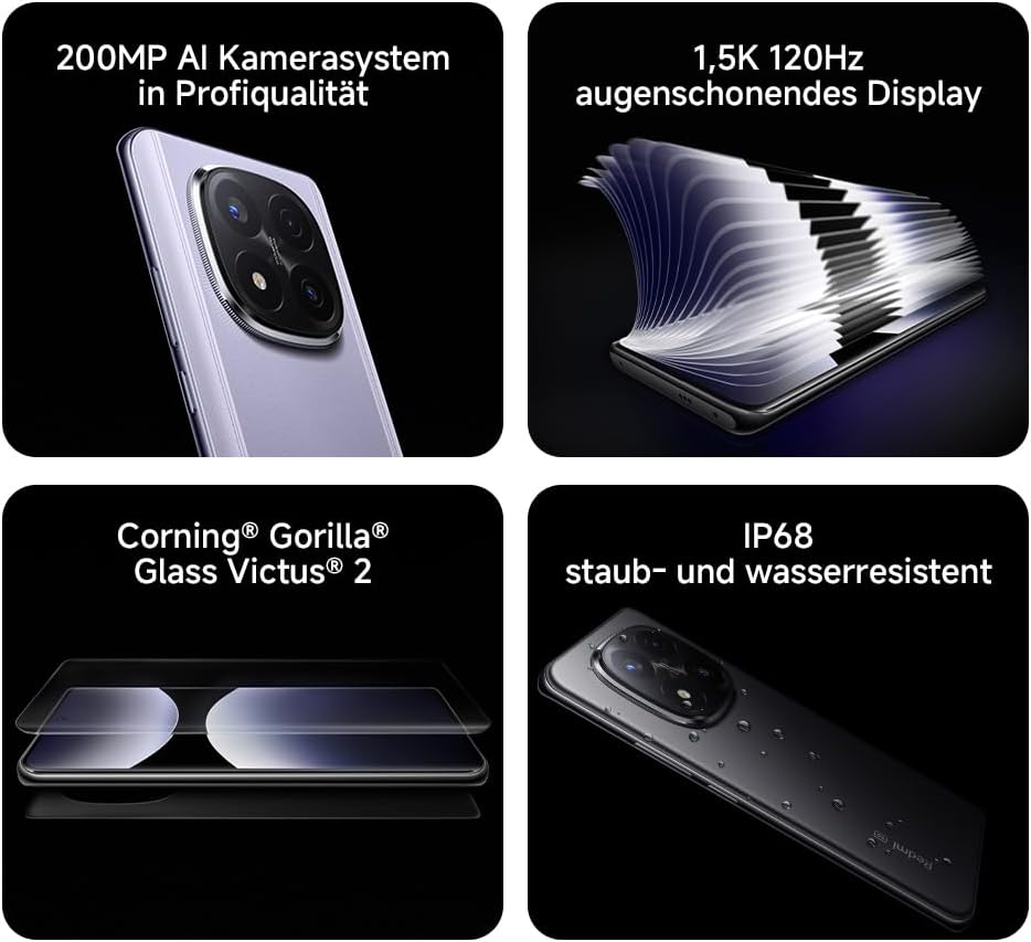Смартфон Xiaomi Redmi Note 14 Pro+ 5G, 12 + 512 GB, син, 200 MP професионална AI камера, IP68, 120 W HyperCharge, AI функции (зарядното не е включено)
