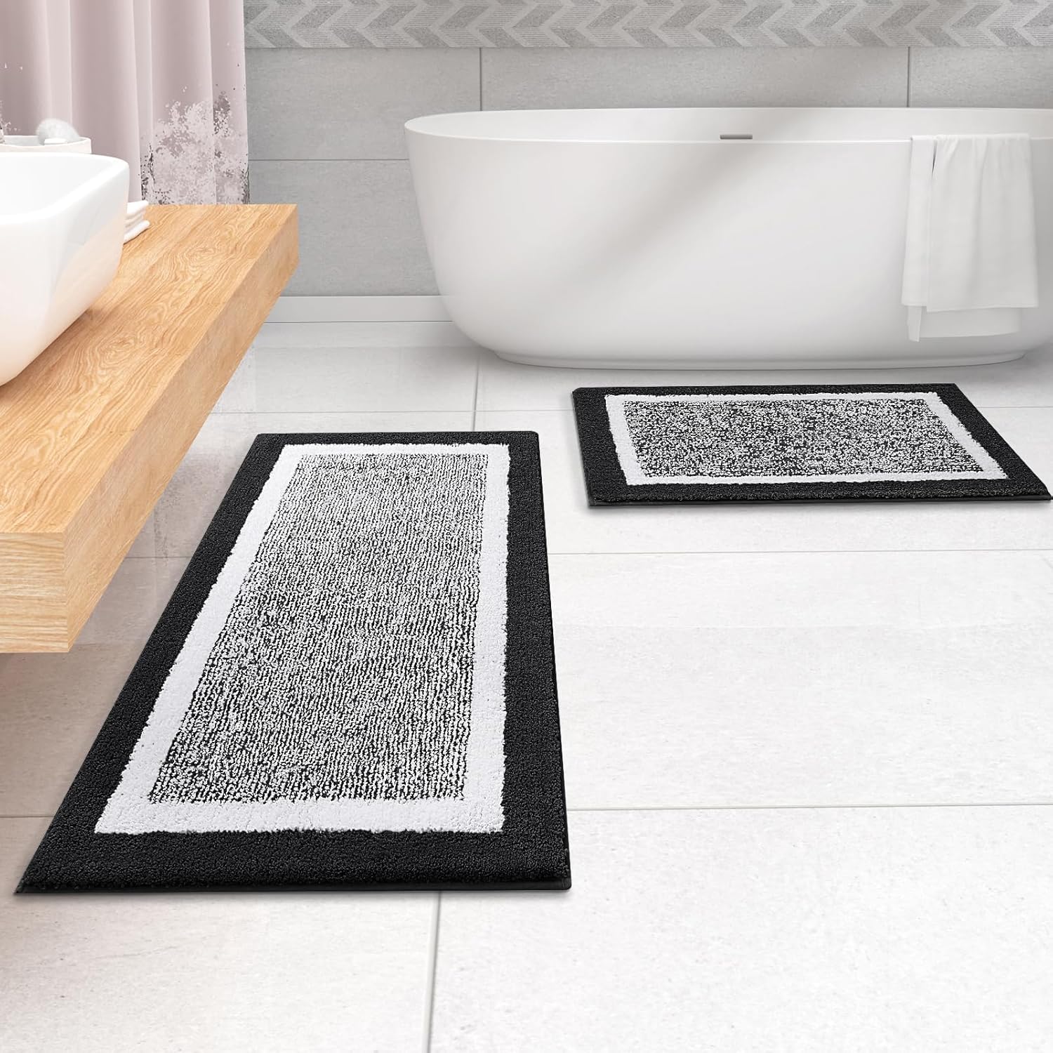 smiry Неплъзгащ се килим за баня, Супер мека абсорбираща постелка за баня, Переща се постелка за баня, Пухкава постелка за душ за баня, Микрофибърна постелка за баня, 40 x 60 см, Черен