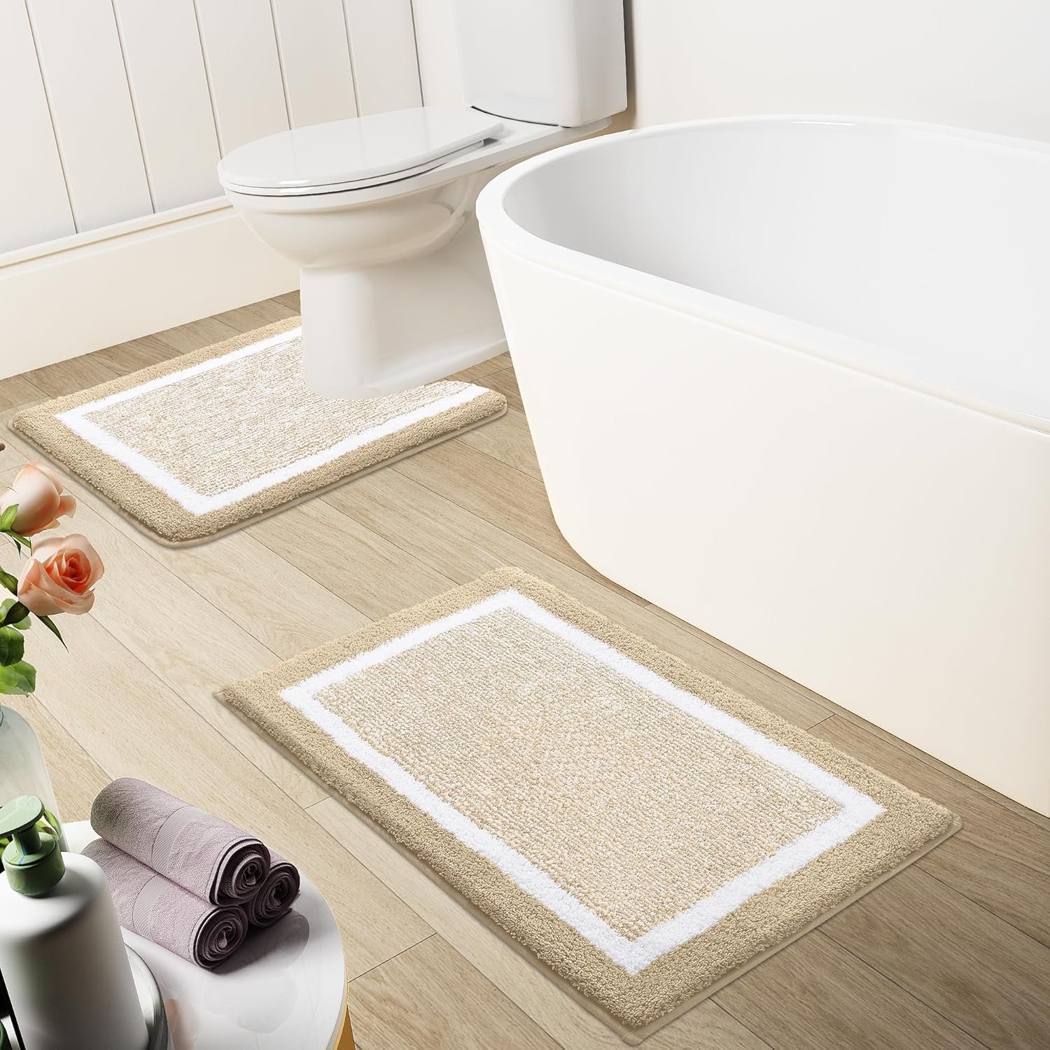smiry Неплъзгащ се килим за баня, Супер мека абсорбираща постелка за баня, Переща се постелка за баня, Пухкава постелка за душ за баня, Микрофибърна постелка за баня, 50 x 75 см, Бежов