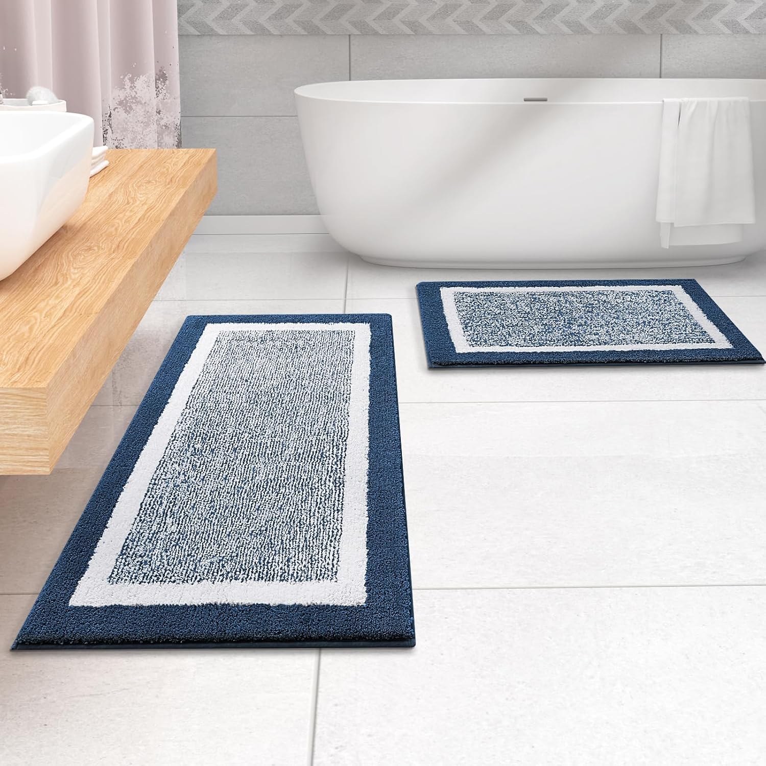 Smiry Неплъзгащ се килим за баня, Супер мека абсорбираща постелка за баня, Переща се постелка за баня, Пухкава постелка за душ за баня, Микрофибърна постелка за баня, 50 x 75 см, Тъмносиньо
